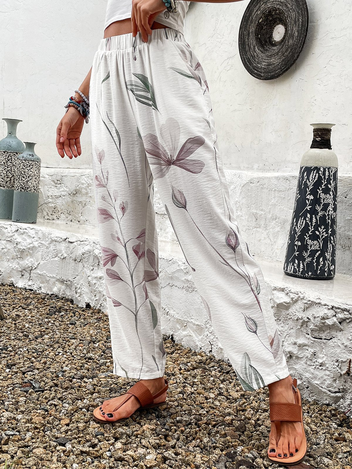 Casual Floral Pocket Stitching Fashion Long Pants - White / S is backordered and will ship as soon as it is back in stock.