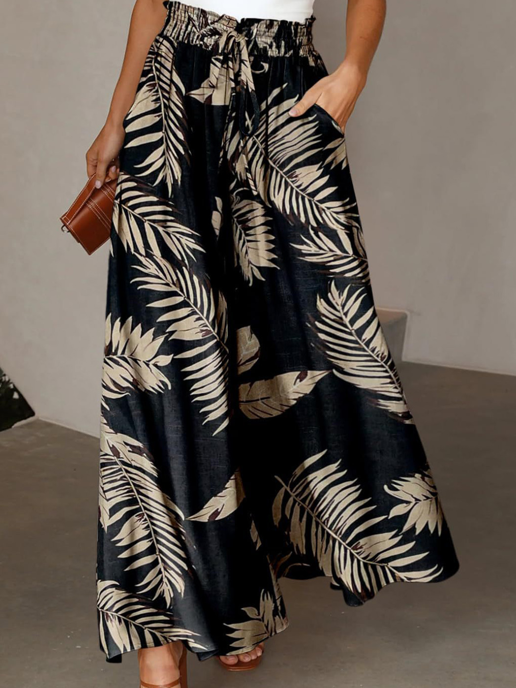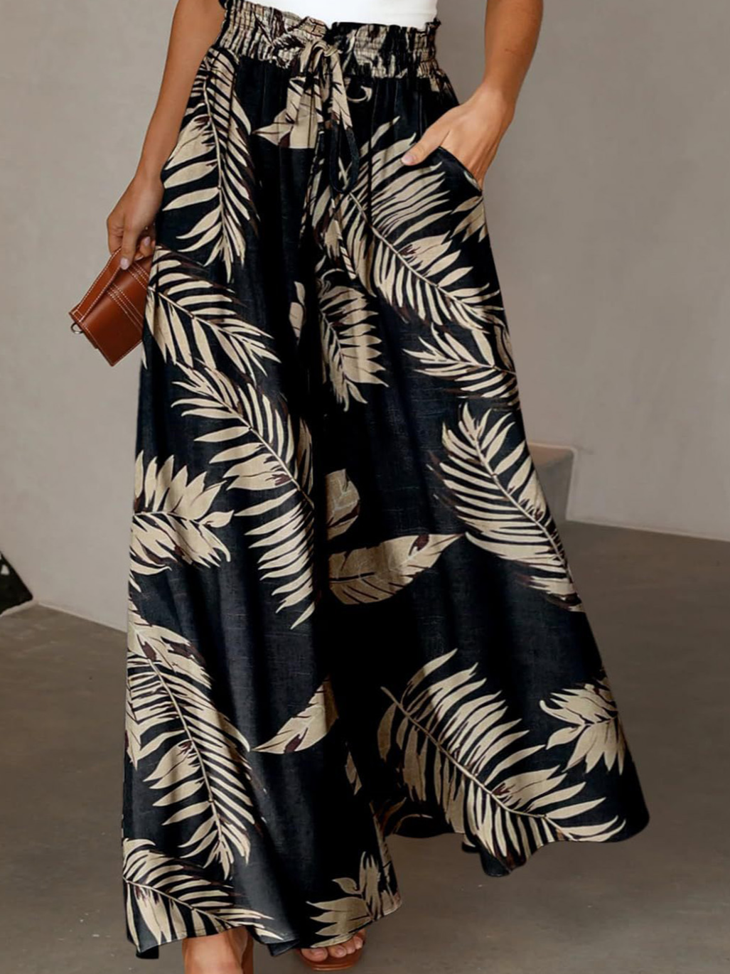 Casual Leaf Fashion Long Pants - Black / S is backordered and will ship as soon as it is back in stock.