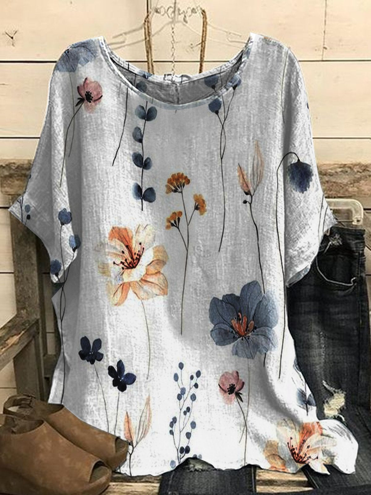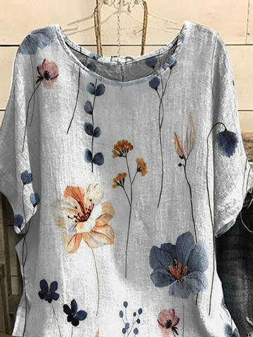 Casual Short Sleeve Crew Neck Floral Fashion Regular Blouses - Multicolor / S is backordered and will ship as soon as it is back in stock.