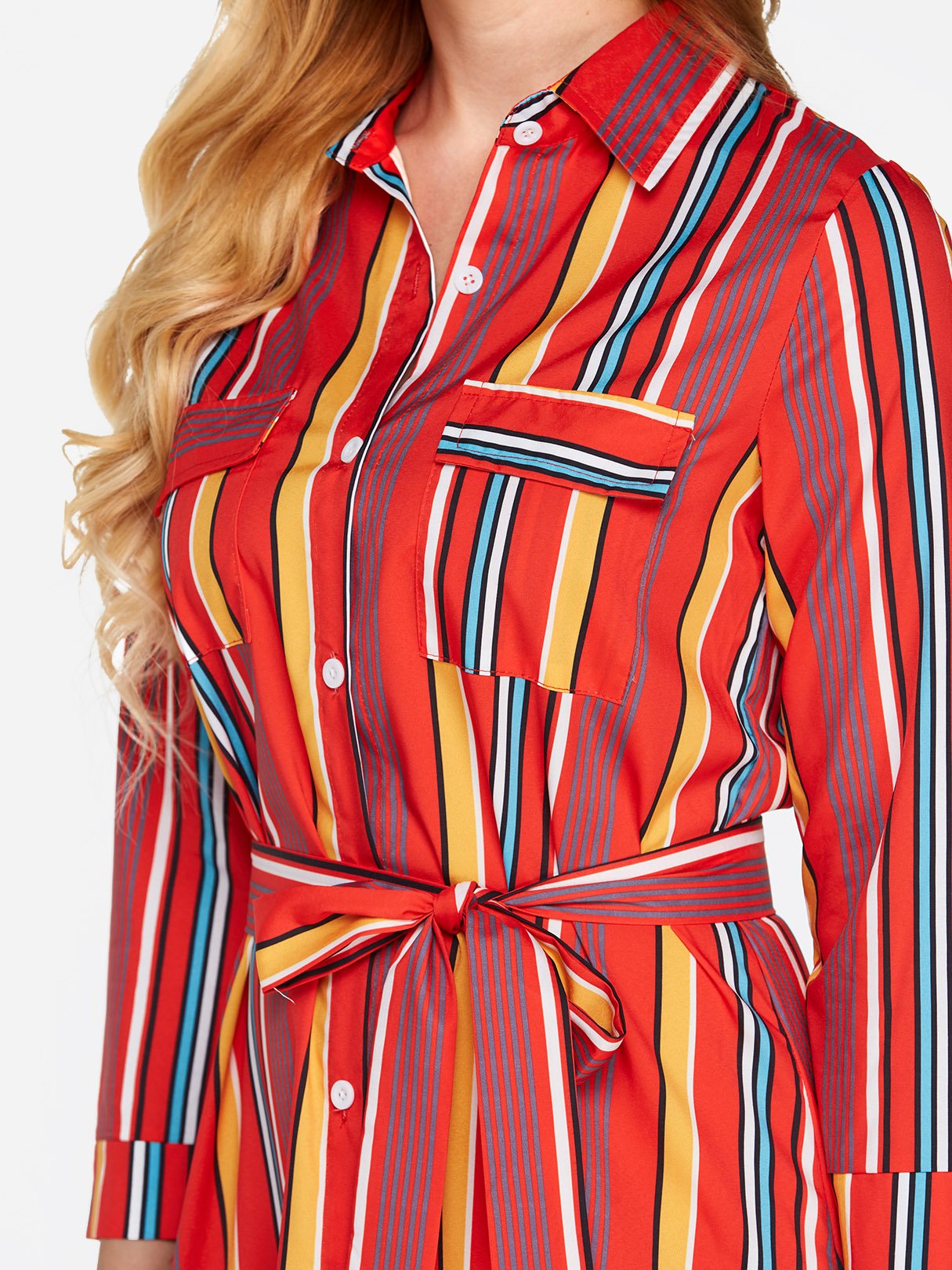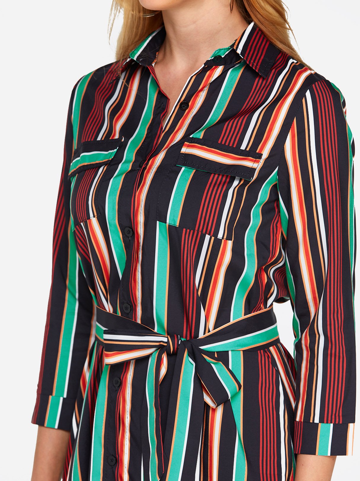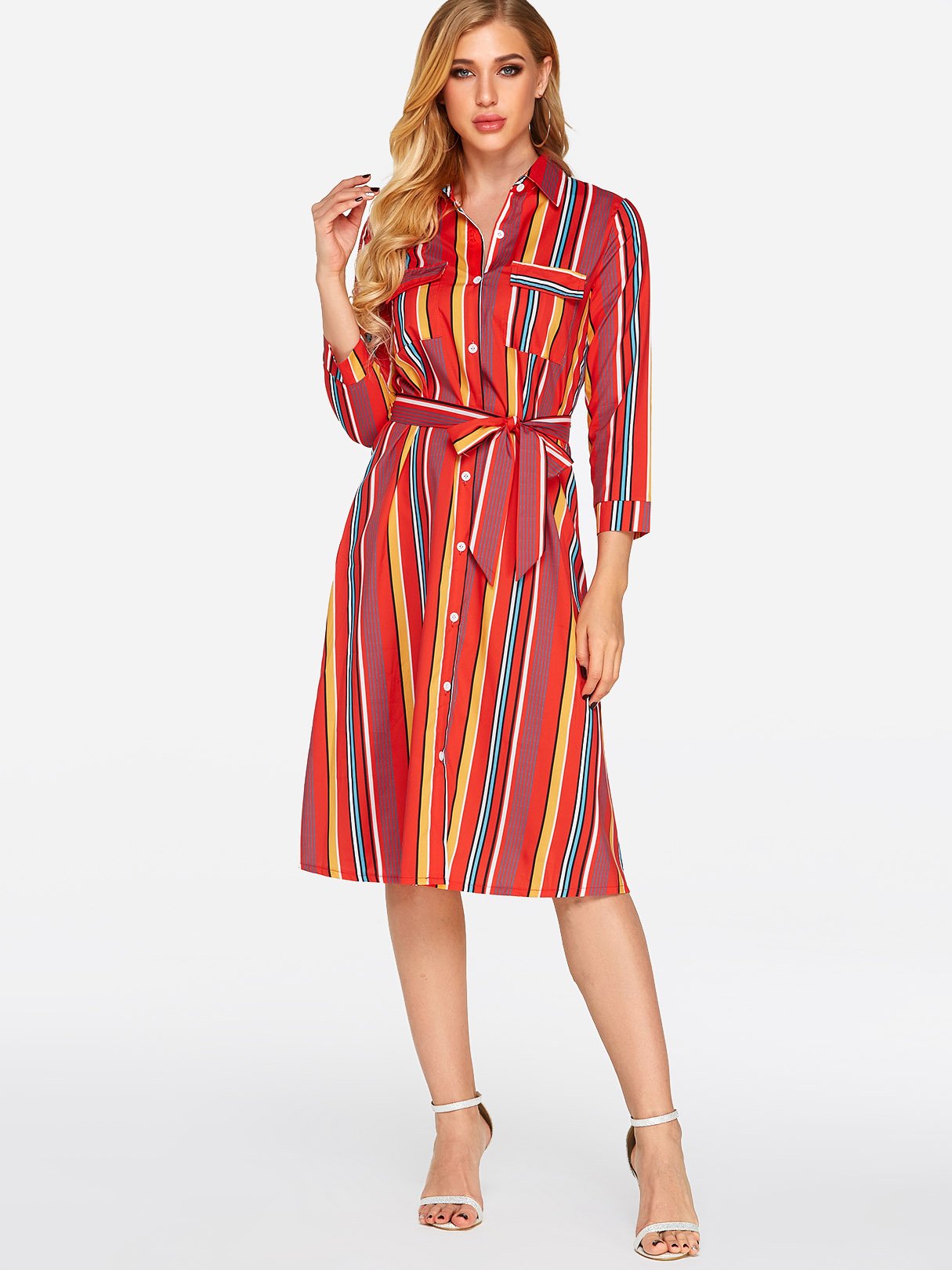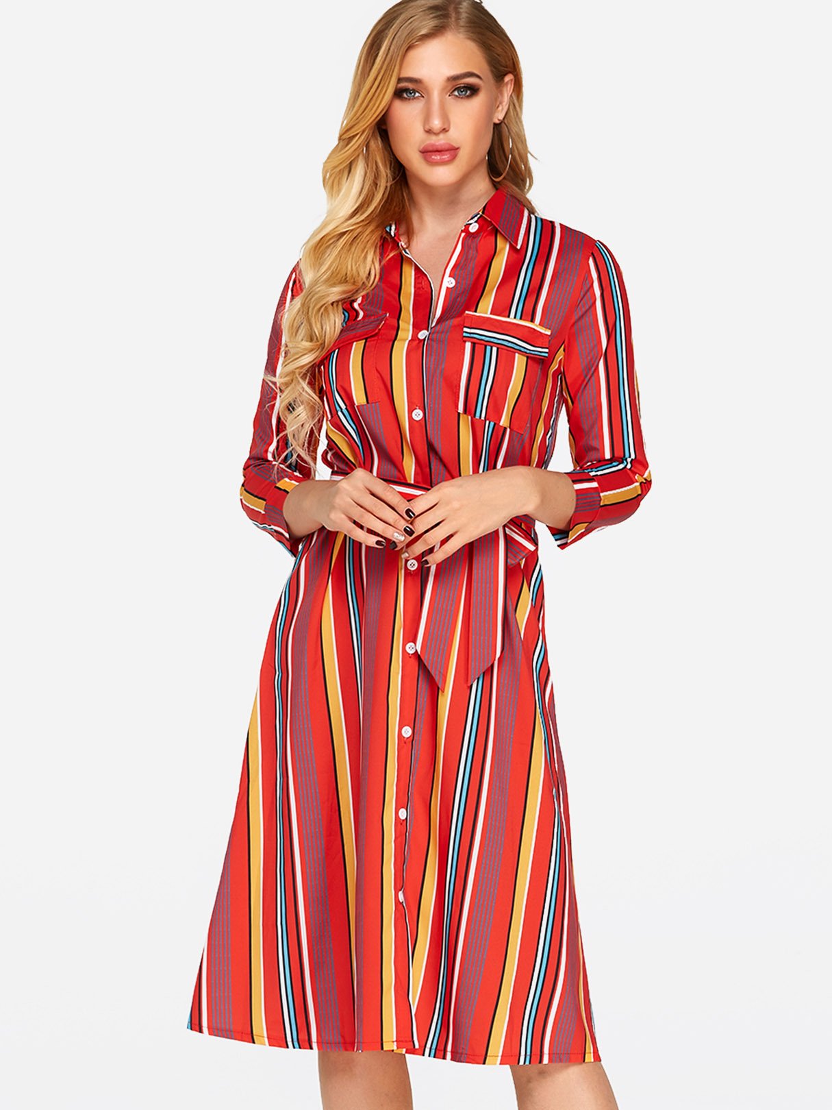 Classic Collar 3/4 Length Sleeve Printed Belt Sexy Dress