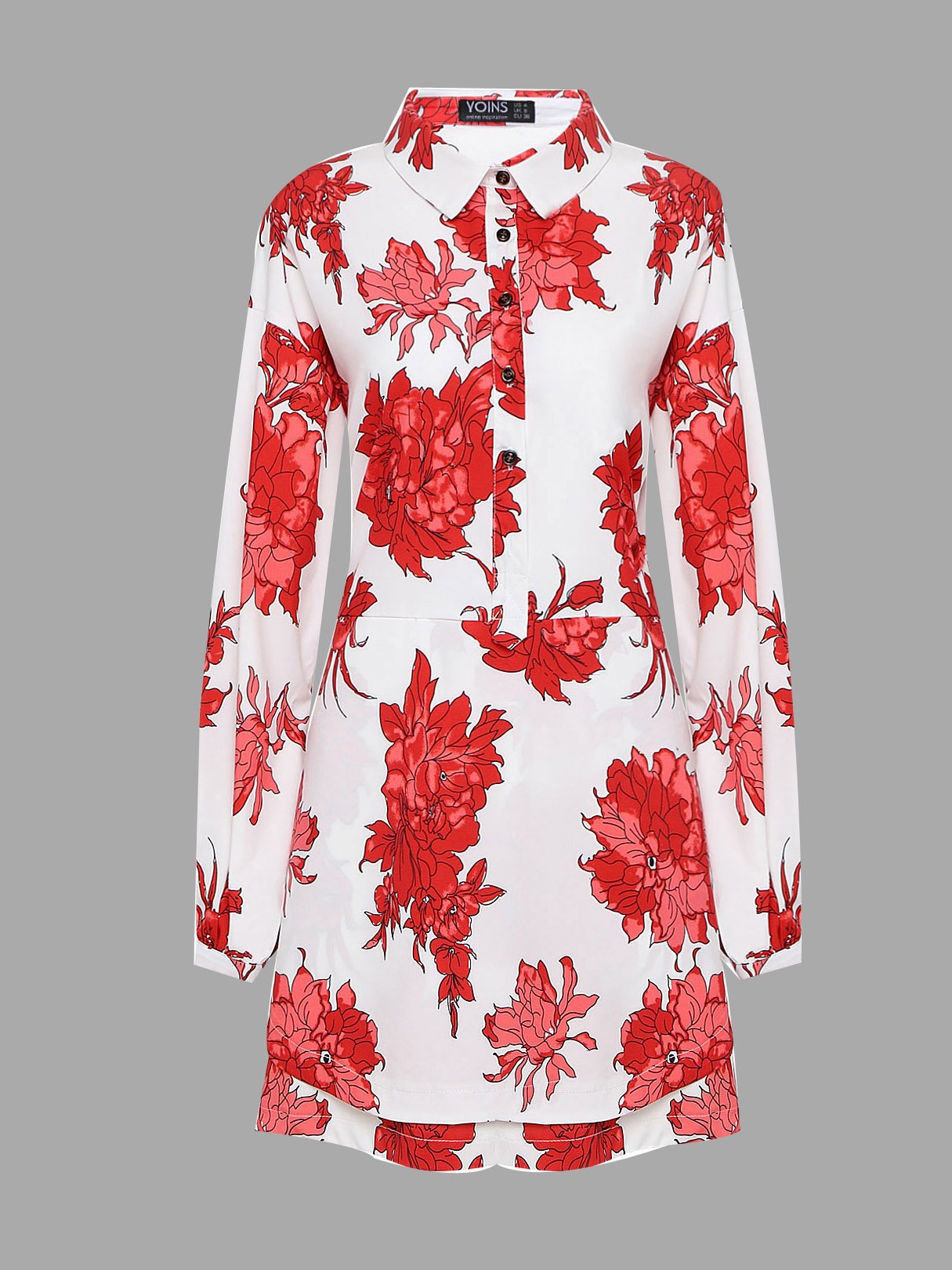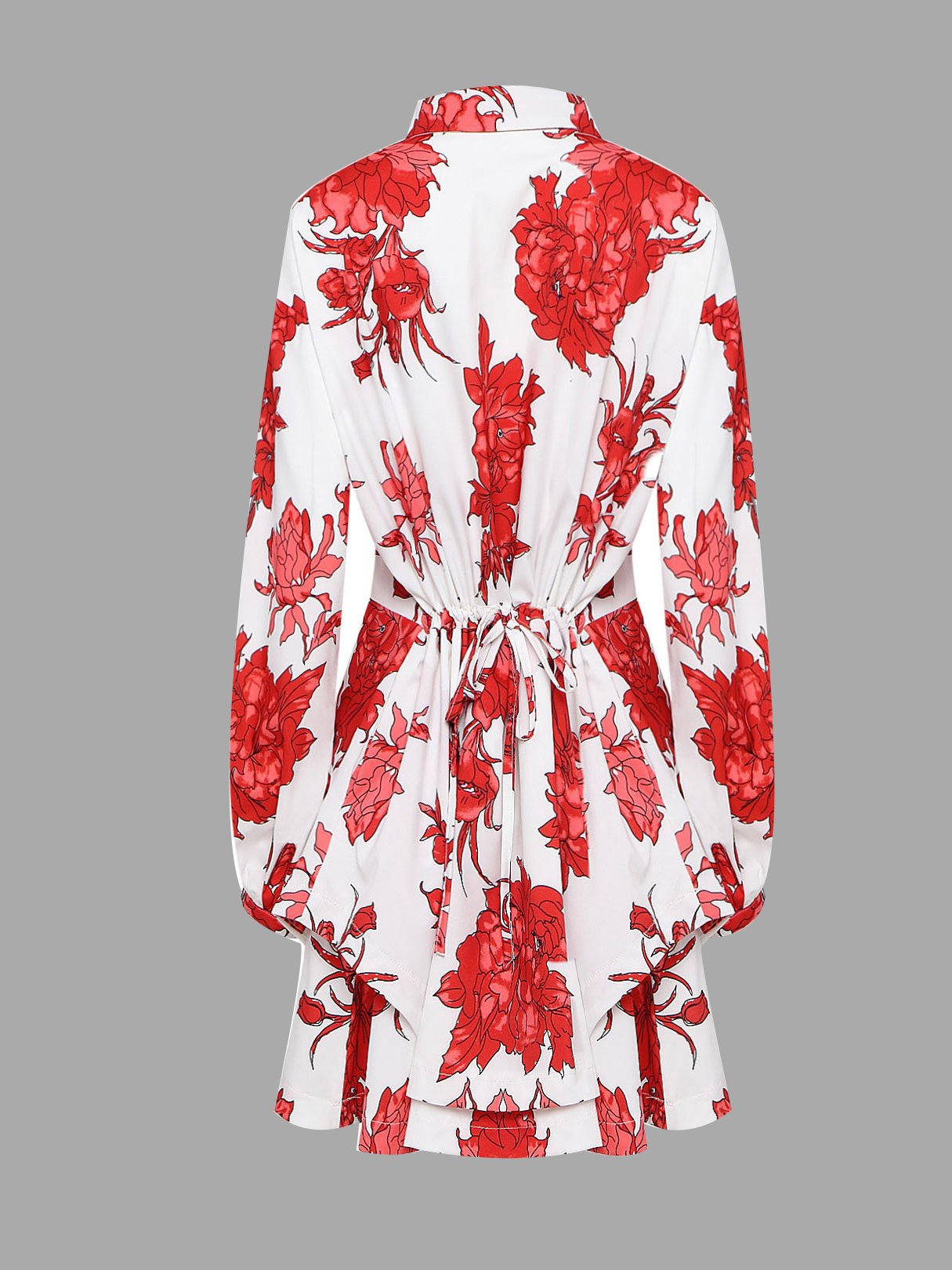 Material:PolyesterNeckline:Classic CollarSeason:Spring,Autumn,WinterSleeves:Long SleevesPattern:Floral PrintWaist Design:Drawstring WaistLength:MiniFit:Loose Fit