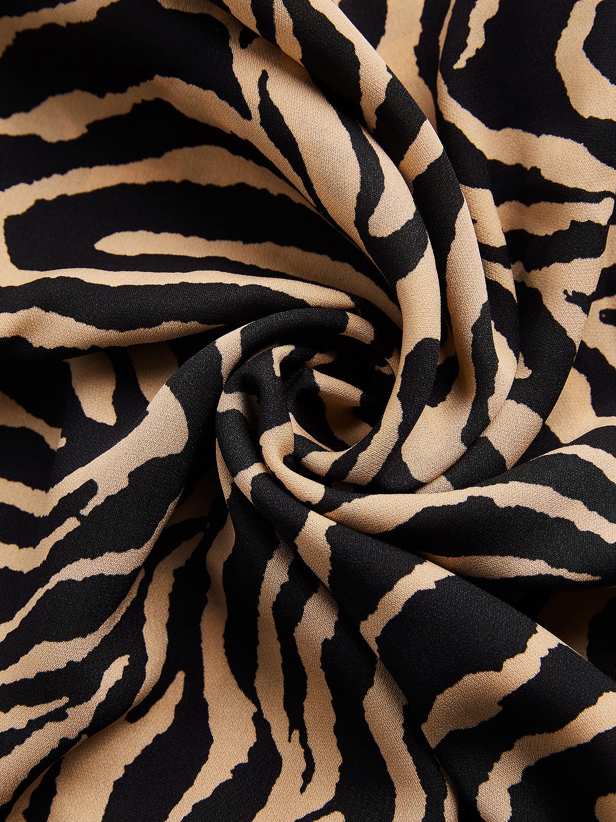 Coffee V-Neck Cold Shoulder Zebra Printed Bowknot Dresses