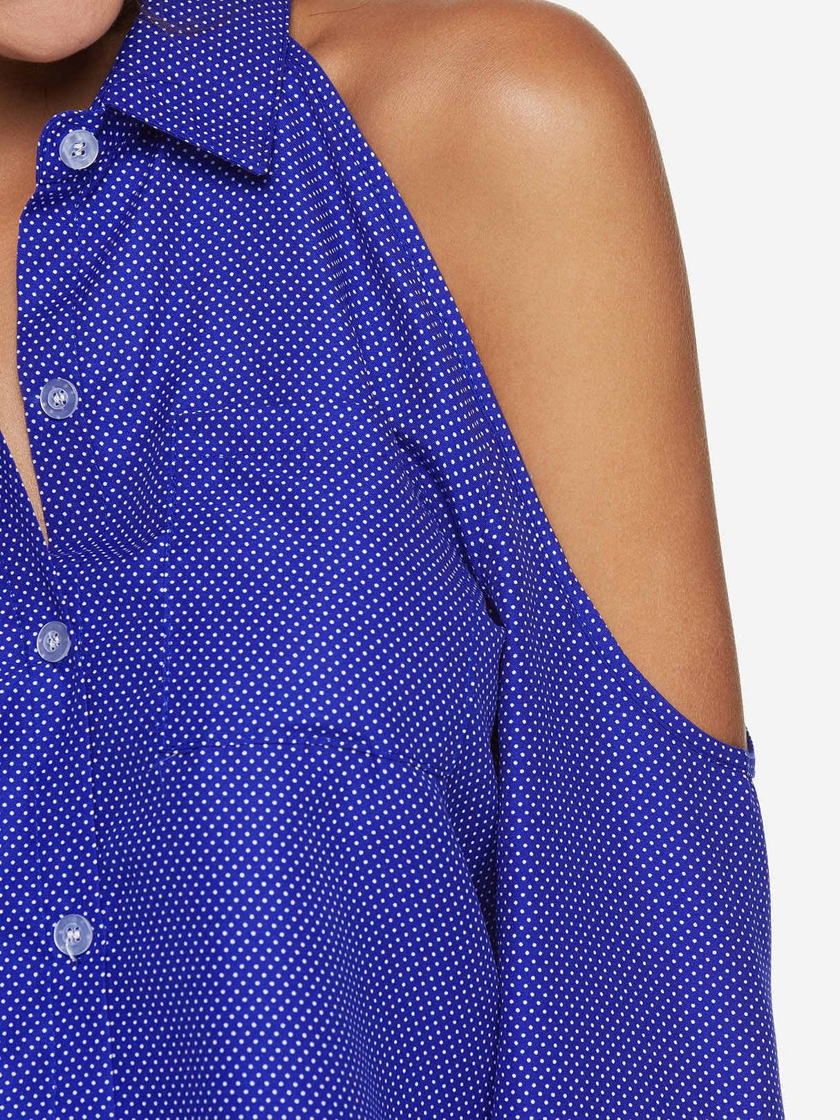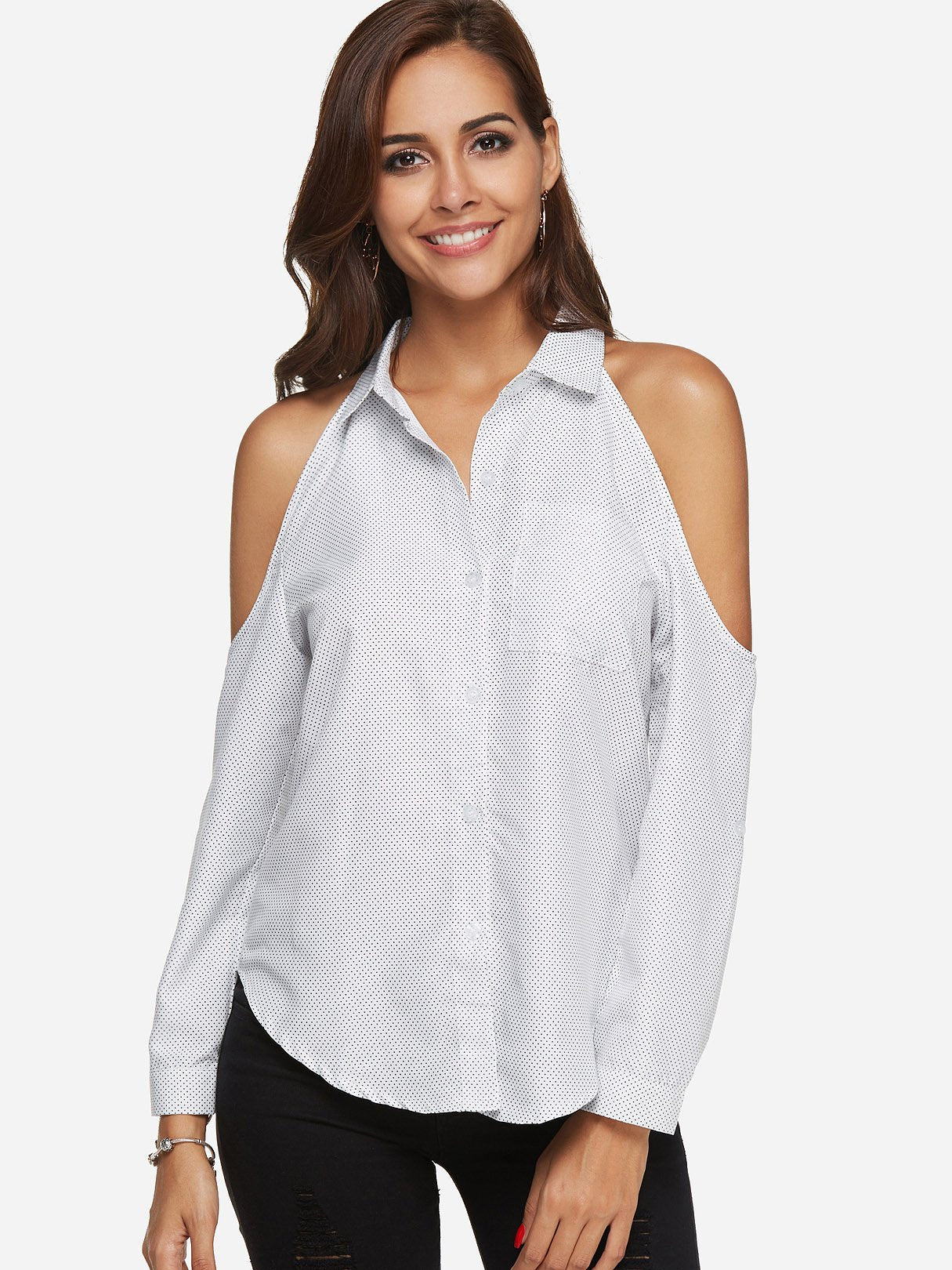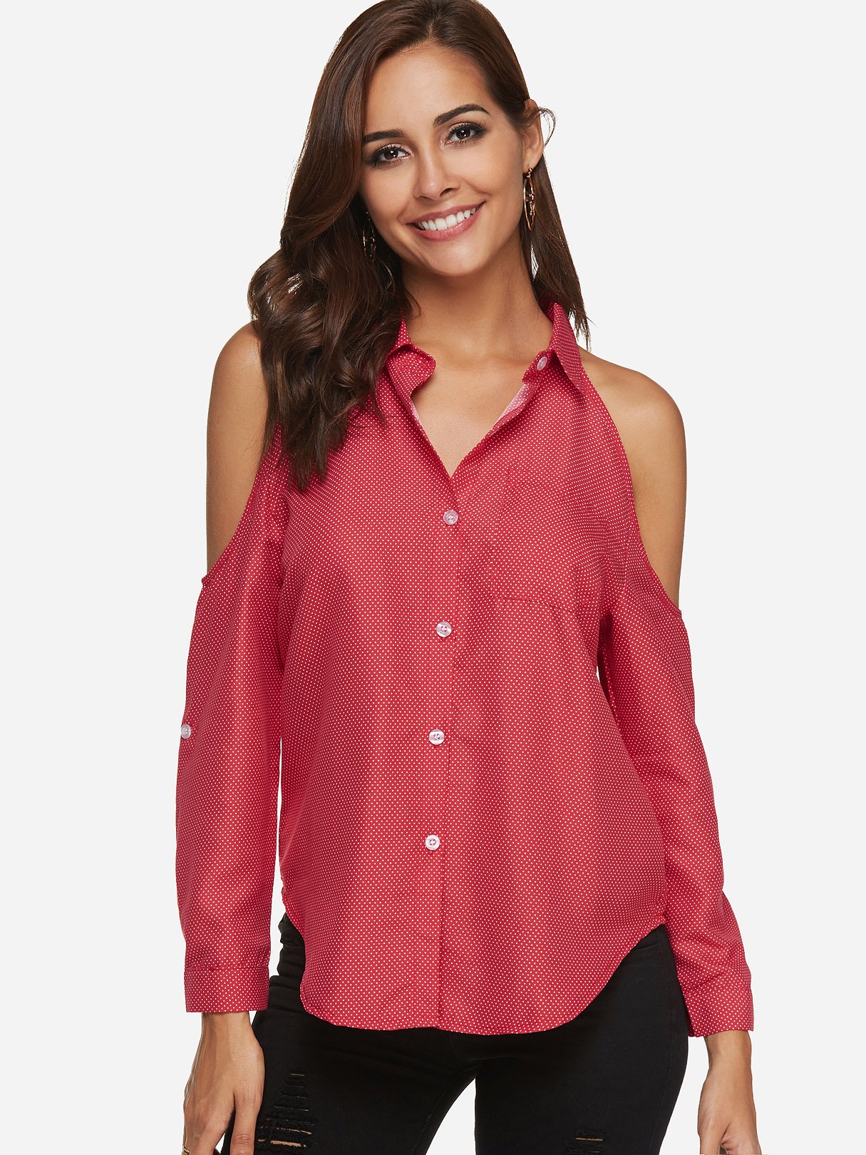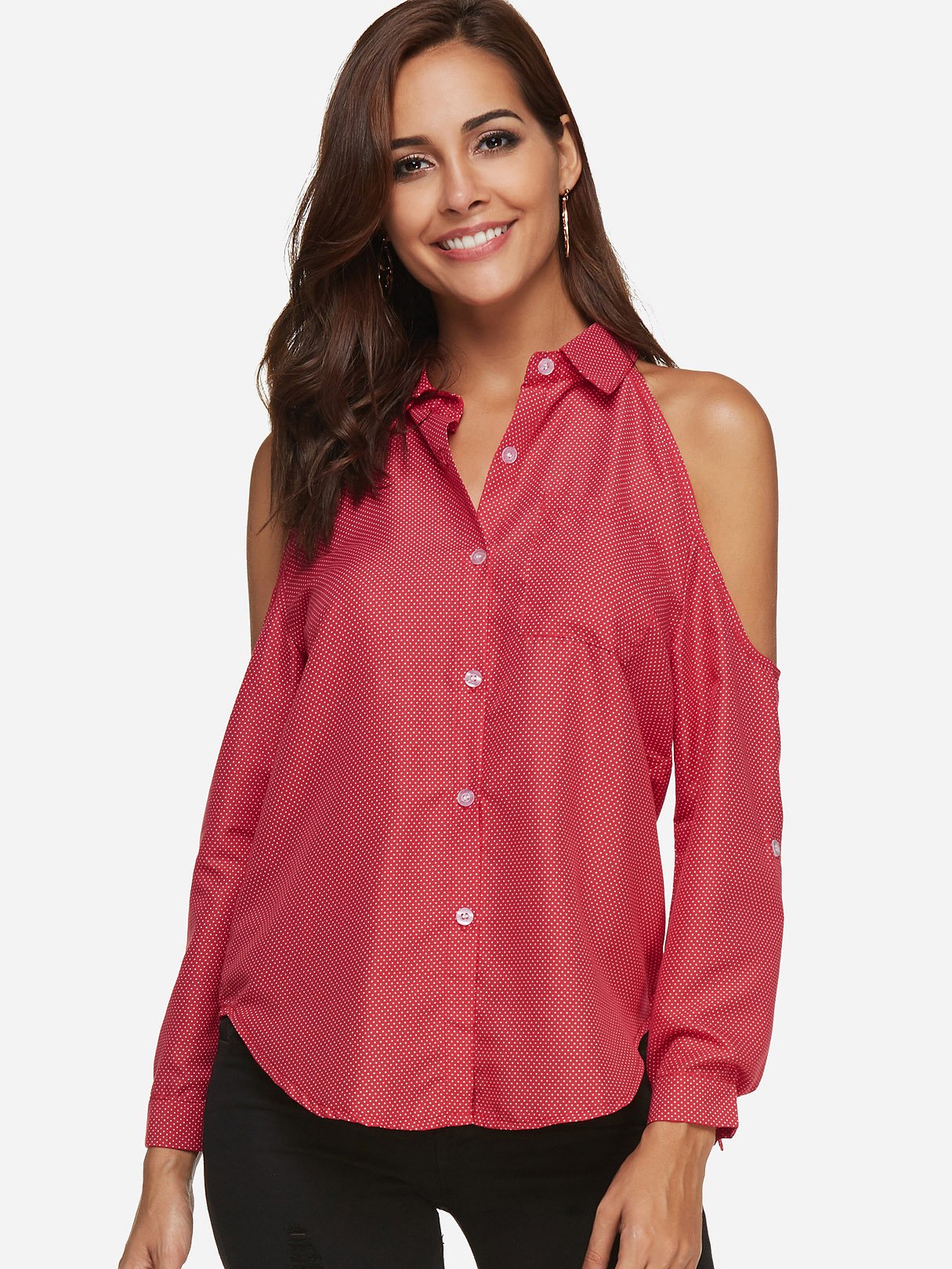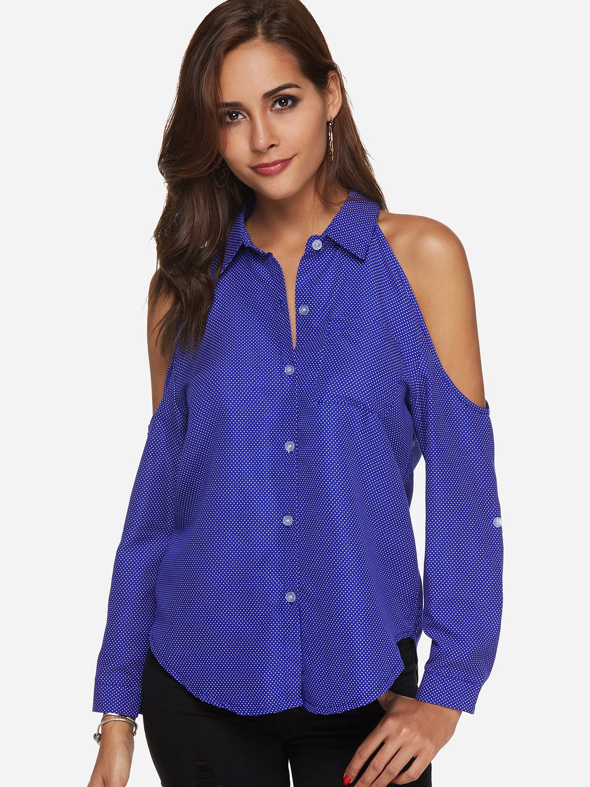 Cold Shoulder Polka Dot Long Sleeve Blouses