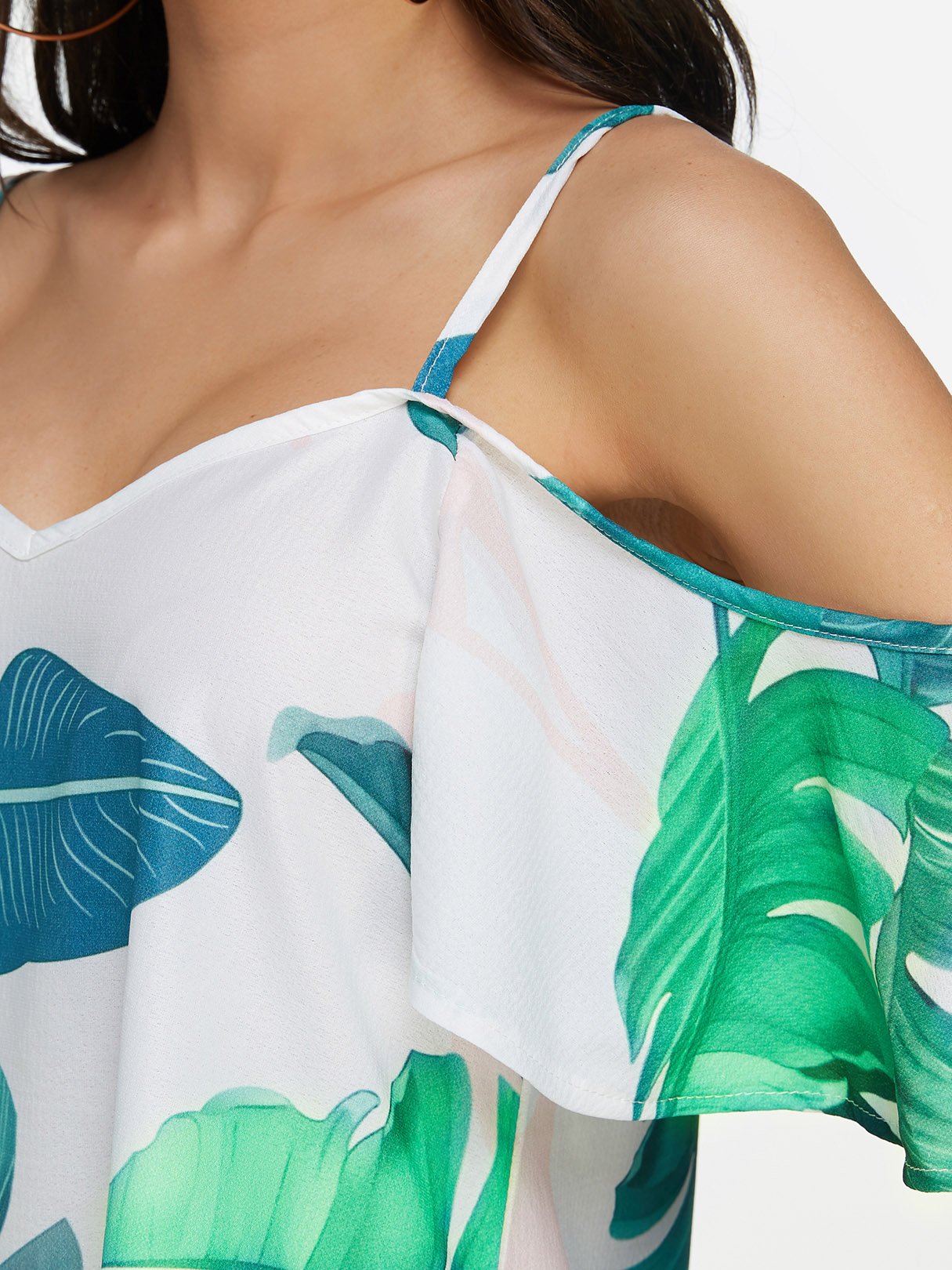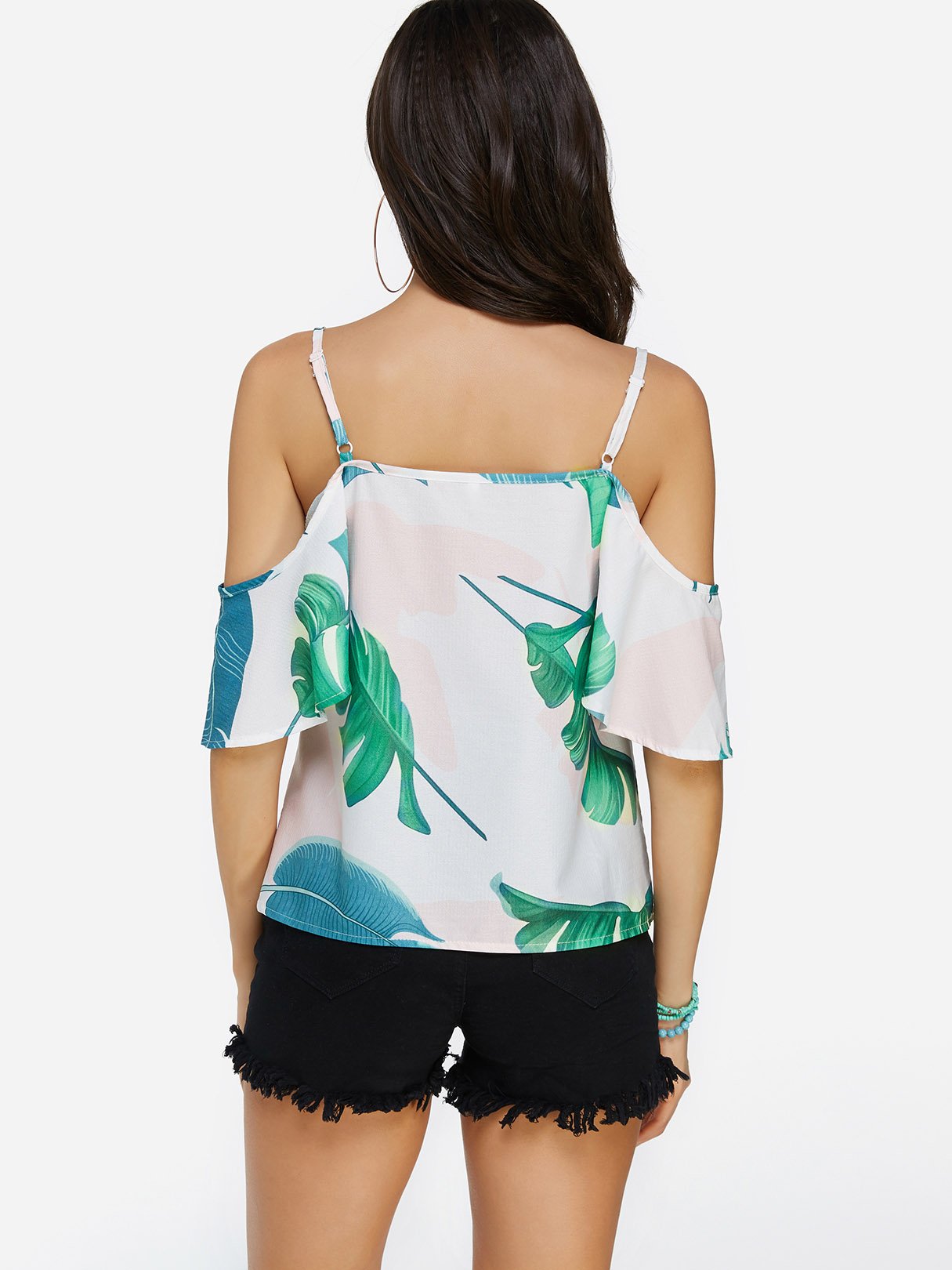 Material:PolyesterNeckline:Cold ShoulderSeason:Spring,SummerSleeves:Short SleevesStyle:Casual StyleFit:Regular Fit