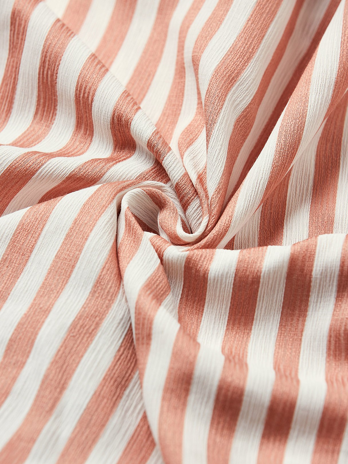 Cold Shoulder Stripe Short Sleeve Pink Blouses
