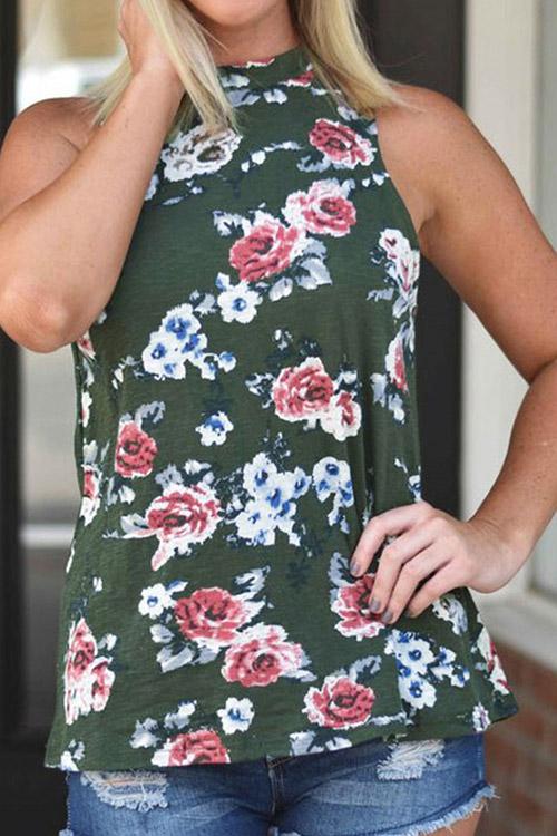 Crew Neck Floral Print Sleeveless Tank Top - Multi / S is backordered and will ship as soon as it is back in stock.