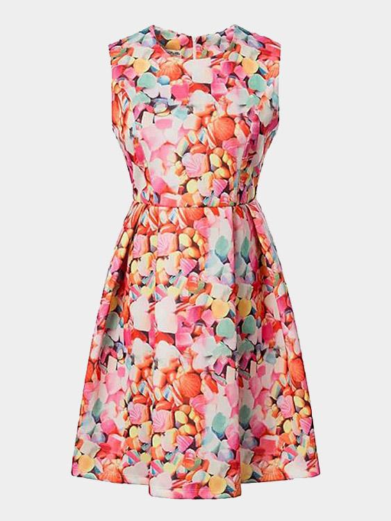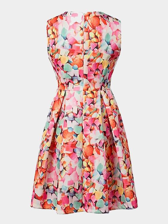 Material:PolyesterNeckline:Crew NeckSeason:SpringSleeves:SleevelessPattern:Floral PrintDetail:Zip Back DesignHem Design:Ruffle HemLength:MiniFit:Regular Fit
