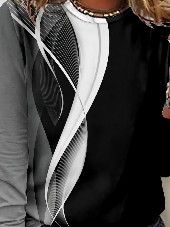 Crew Neck Long Sleeve Christmas Fashion Regular Blouses - Black-White / S is backordered and will ship as soon as it is back in stock.