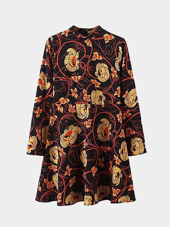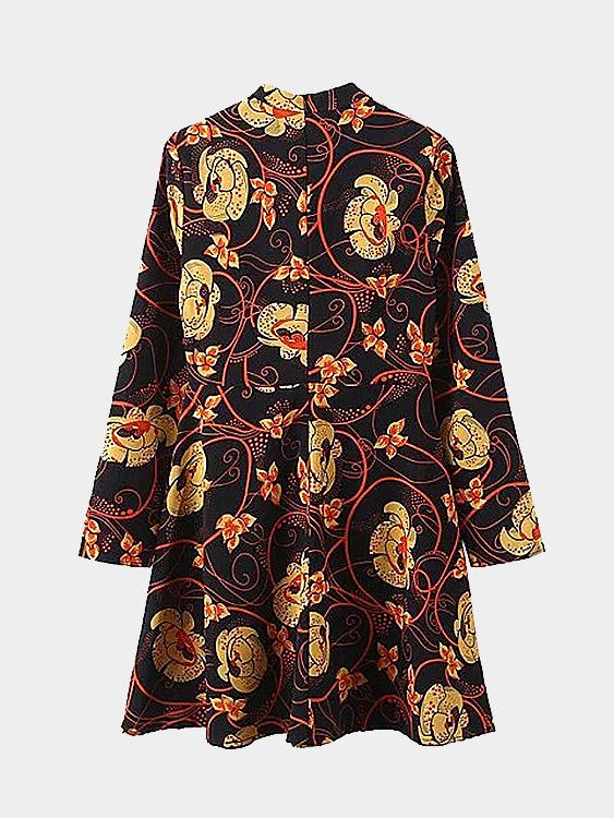 Material:PolyesterNeckline:Crew NeckSeason:SpringSleeves:Long SleevesPattern:Floral PrintStyle:Casual StyleHem Design:Flounced HemLength:Mini