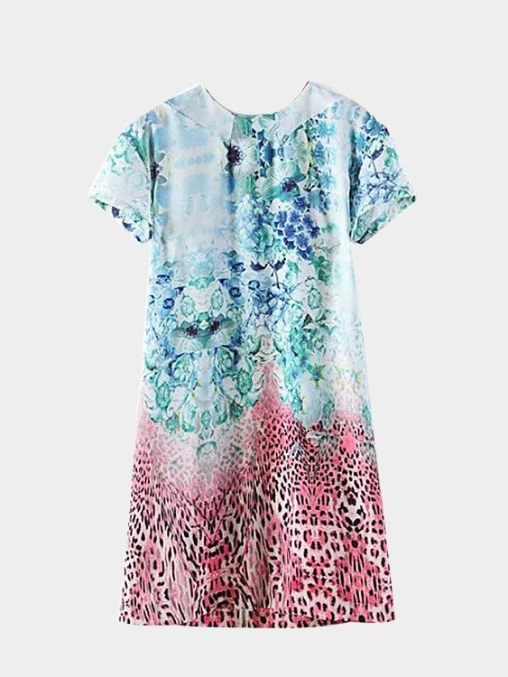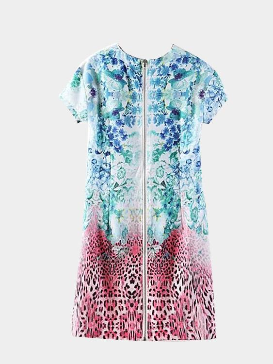Material:PolyesterNeckline:Crew NeckSeason:Spring,SummerSleeves:Short SleevesPattern:Leopard,Floral PrintDetail:Zip Back DesignLength:MiniFit:Regular Fit