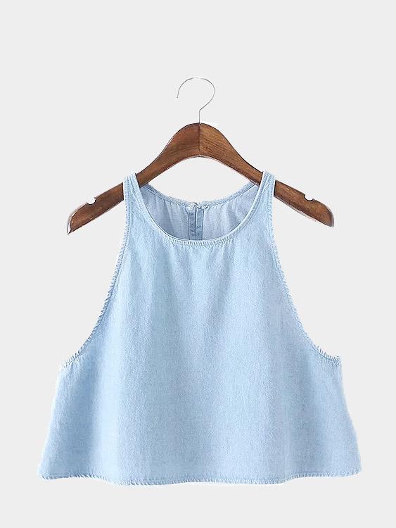 Crew Neck Sleeveless Blue Camis - Blue / S is backordered and will ship as soon as it is back in stock.