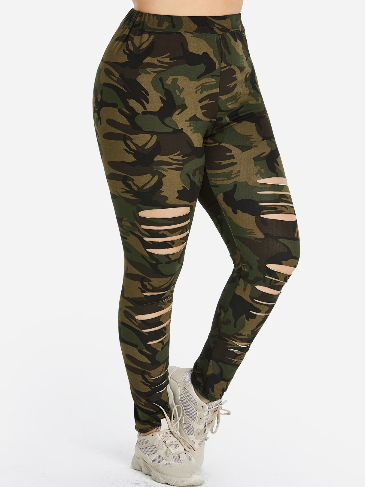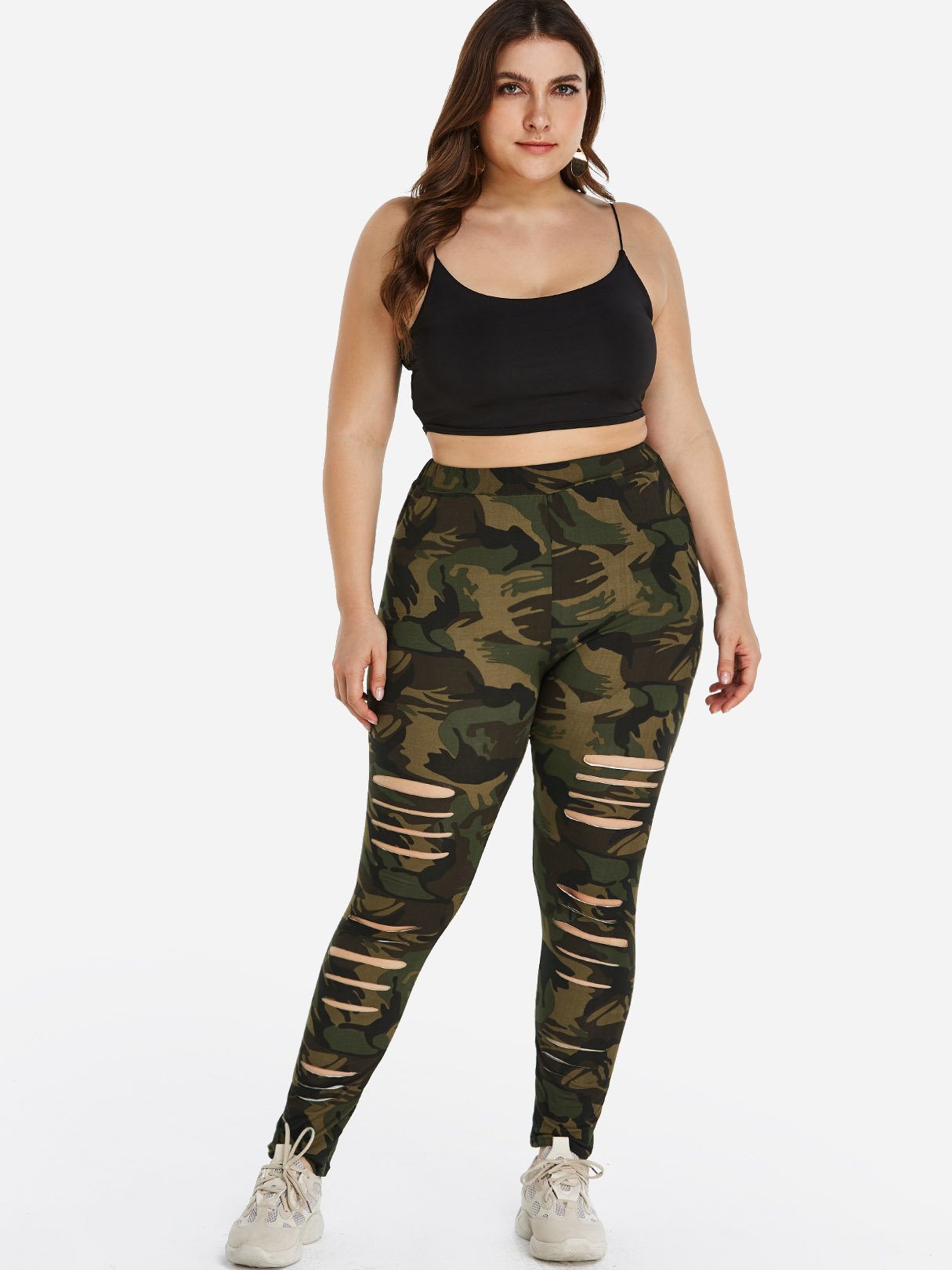 Cut Out Camo Plus Size Bottoms - Camo / XL is backordered and will ship as soon as it is back in stock.