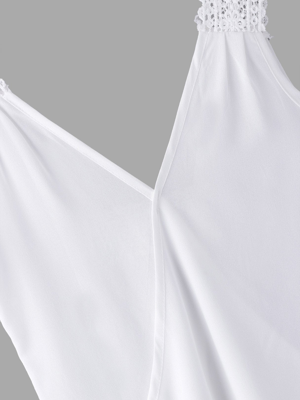 Deep V Neck Plain Backless Sleeveless White Blouses