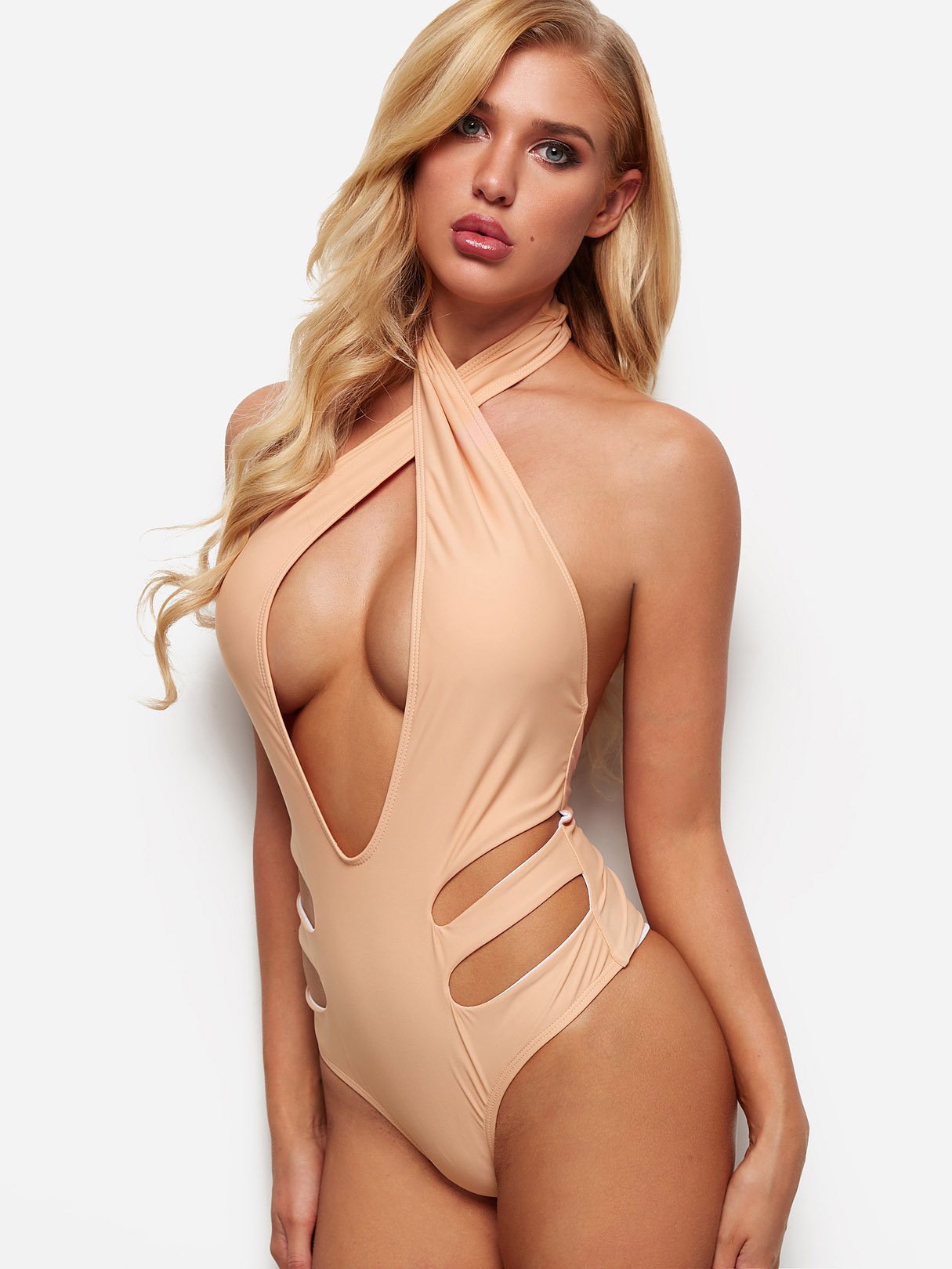Deep V Neck Sleeveless Backless Hollow Bikinis