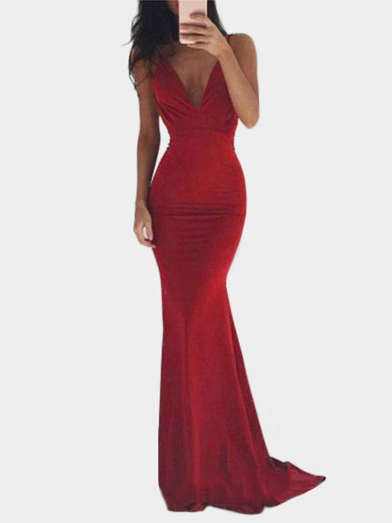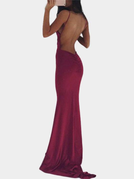 Material:PolyesterNeckline:Deep V NeckSeason:Spring,Summer,WinterSleeves:SleevelessStyle:Party Style,Formal StyleDetail:Backless DesignLength:MaxiFit:Regular FitOccasion:Formal