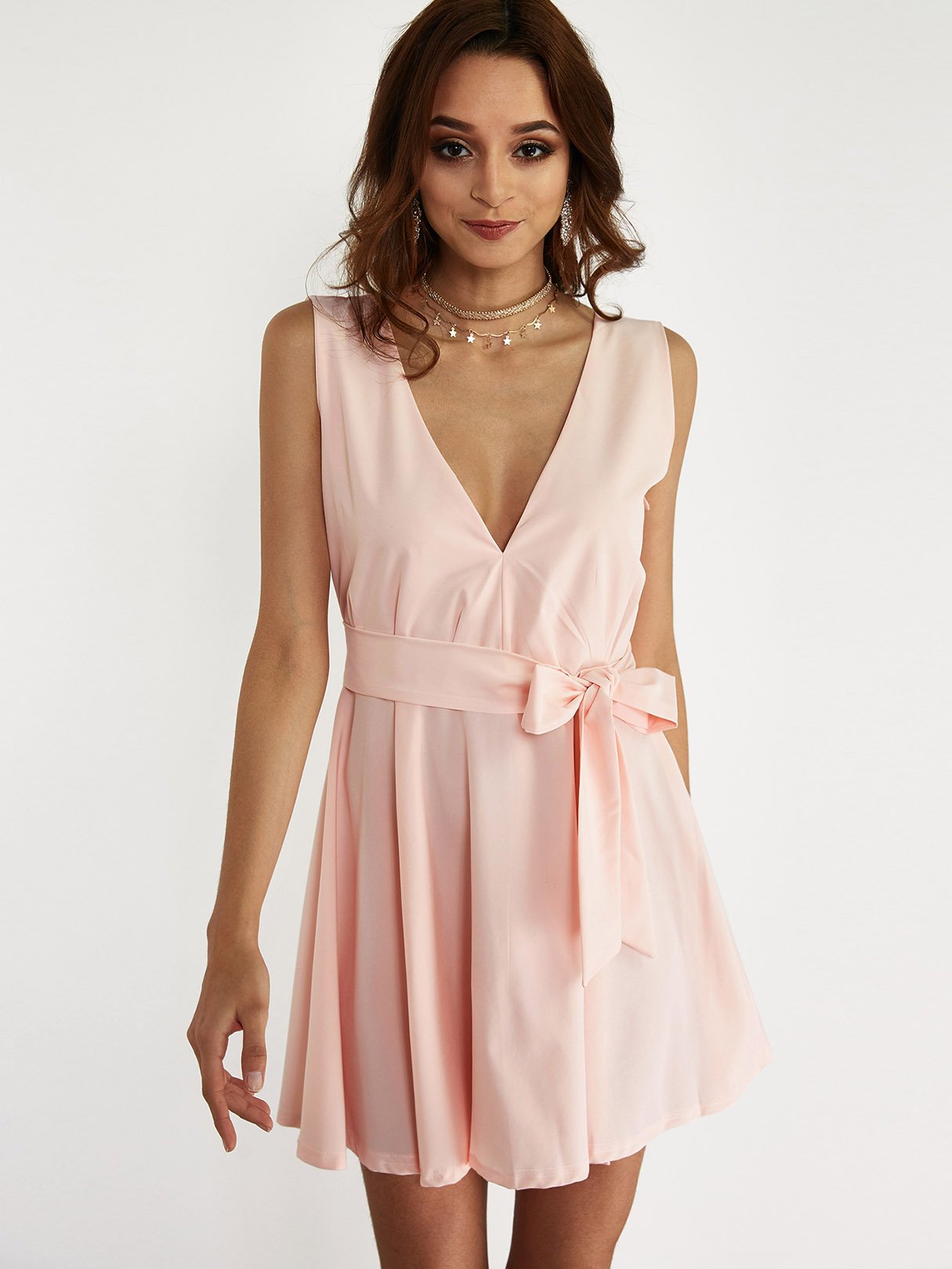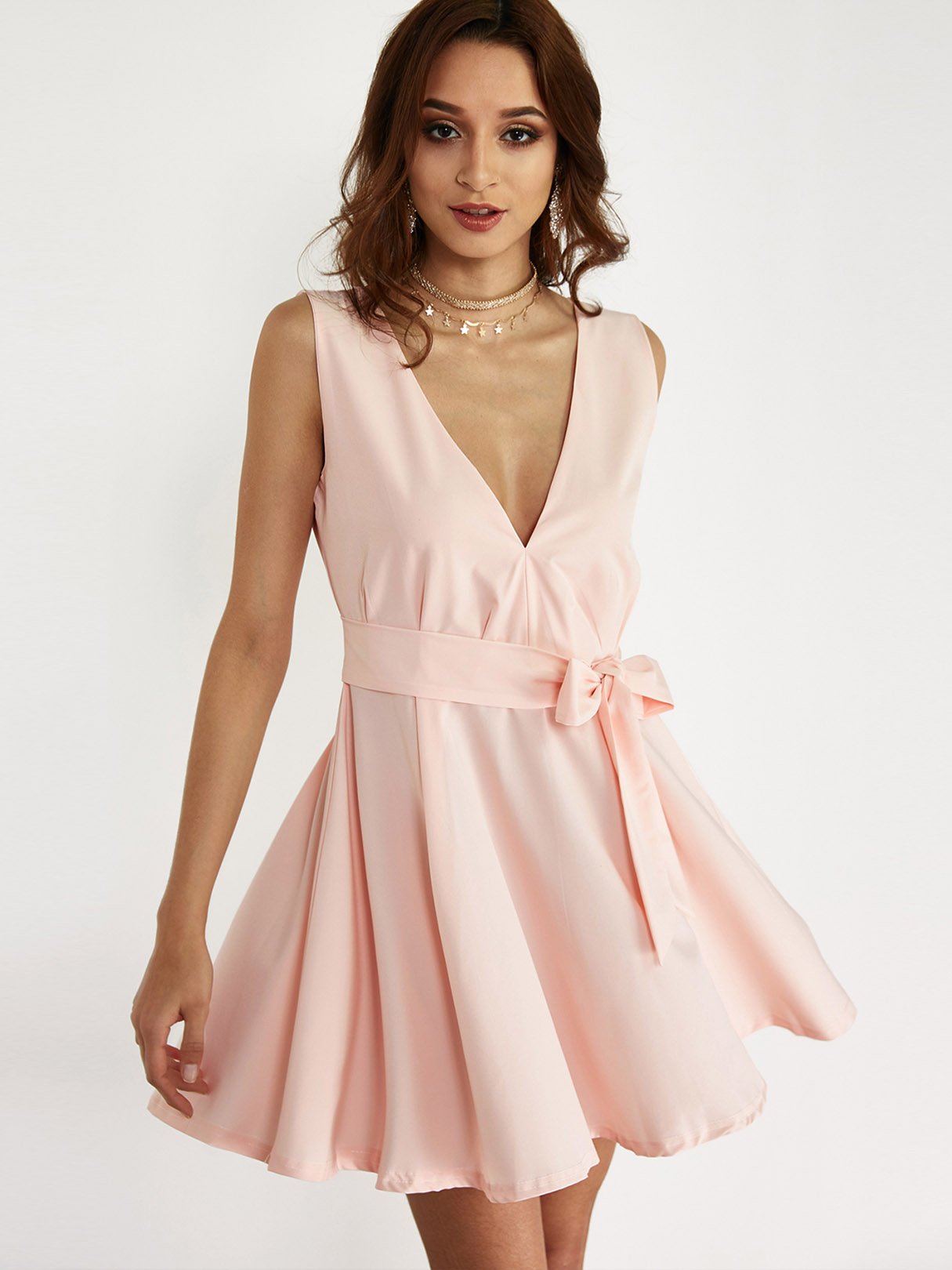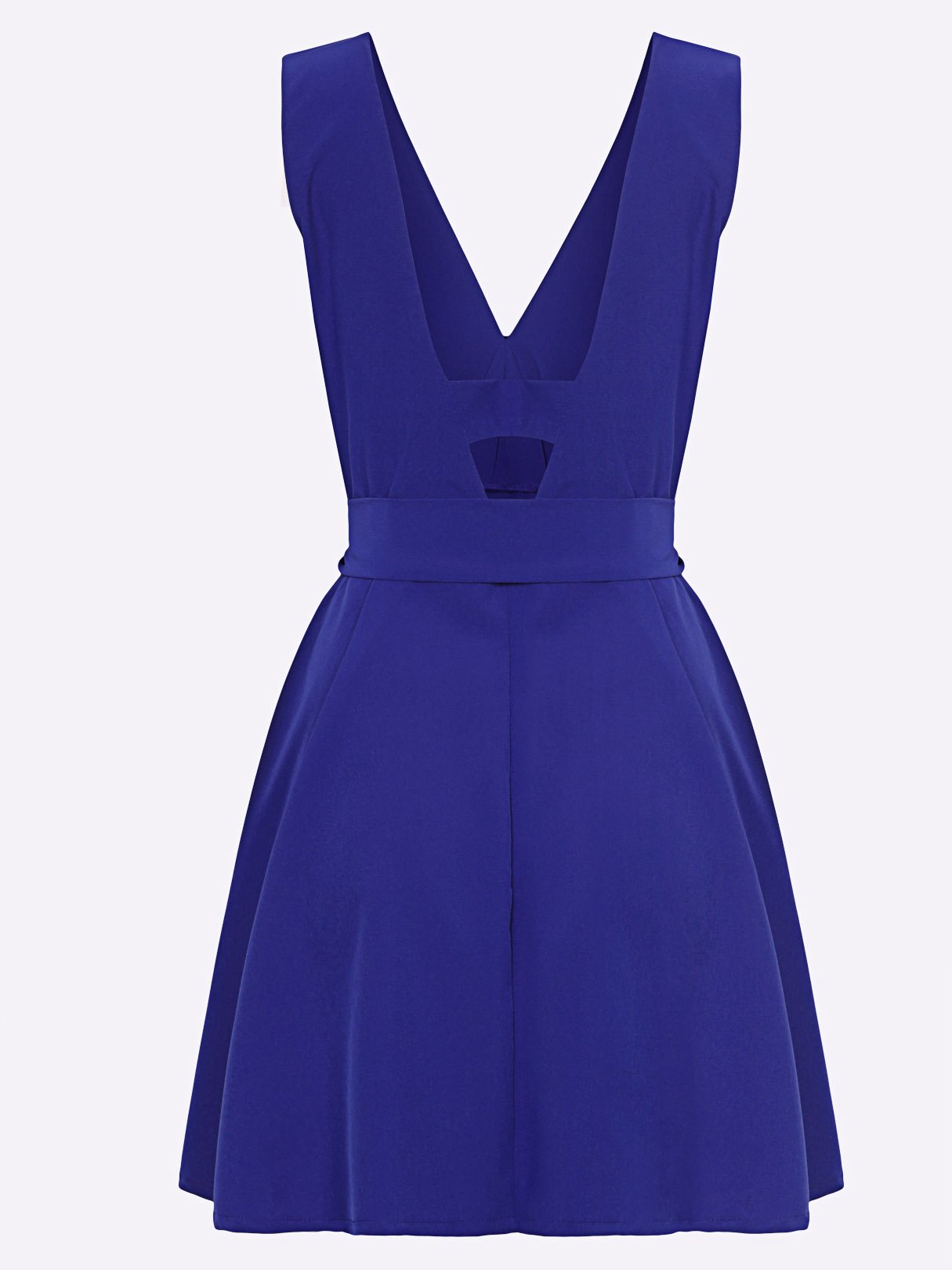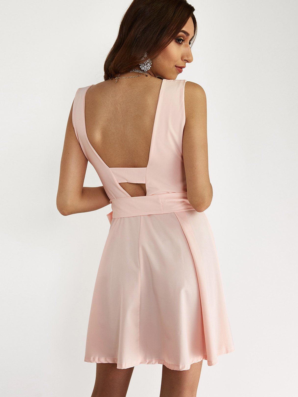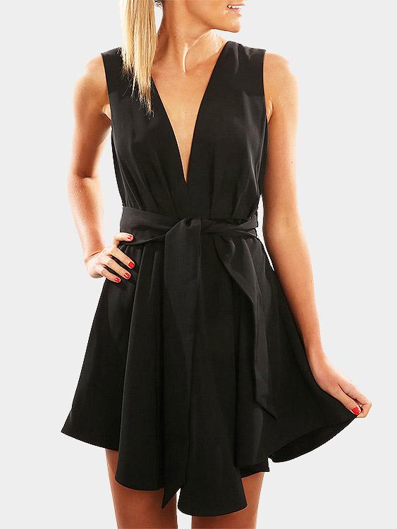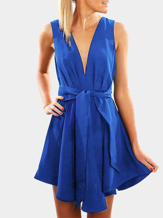 Material:PolyesterNeckline:Deep V NeckSeason:Spring,Summer,AutumnSleeves:SleevelessStyle:Casual StyleDetail:Backless DesignLength:MiniFit:Regular FitOccasion:Homecoming