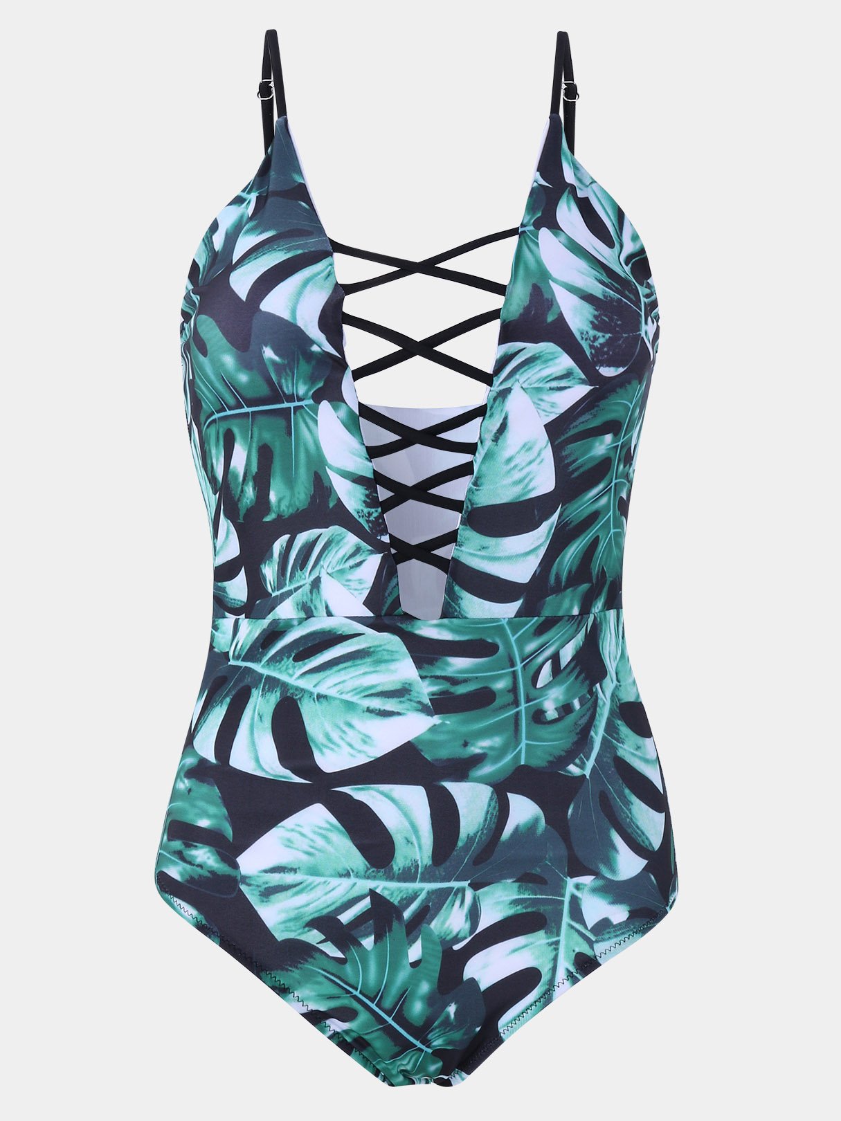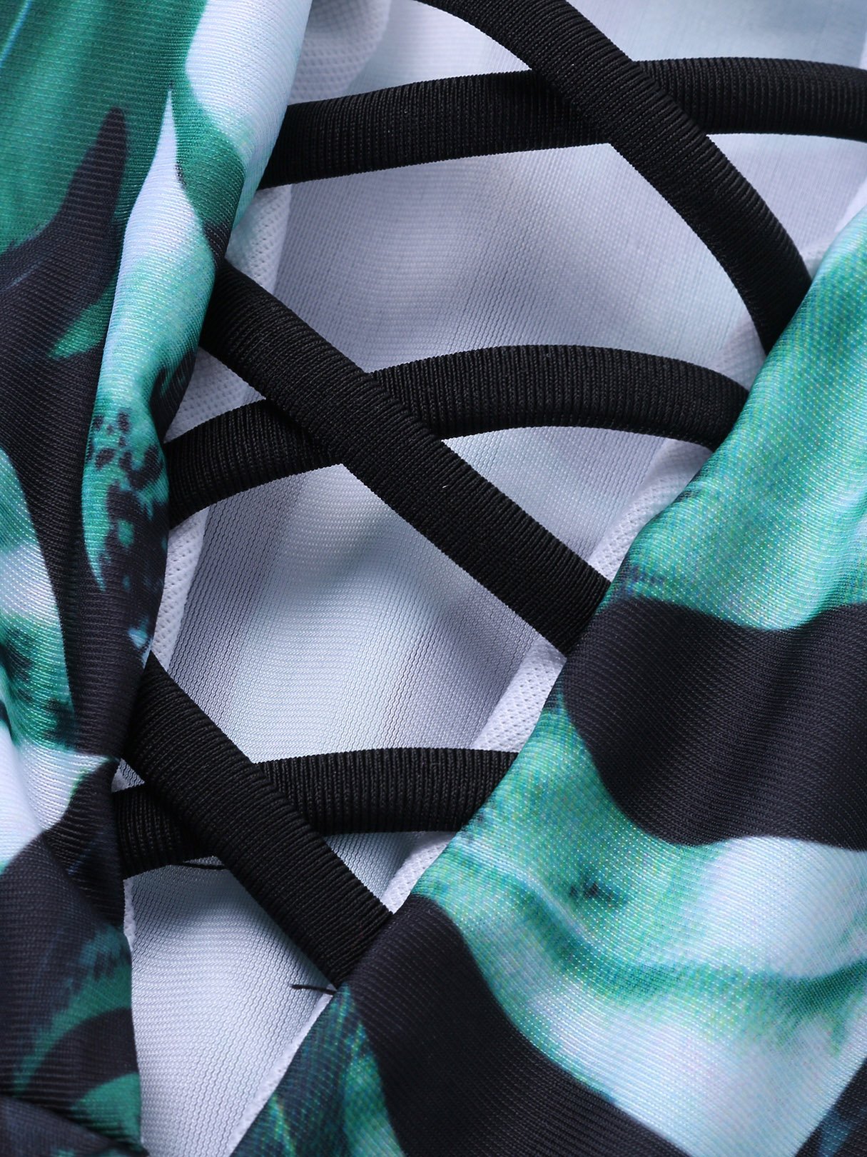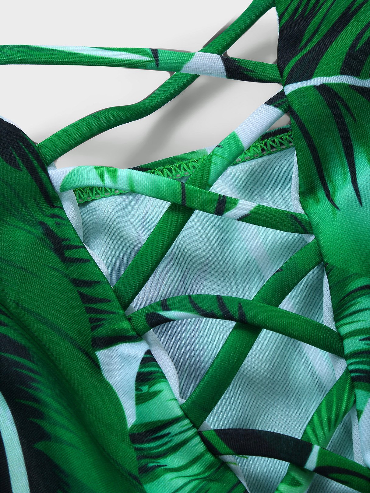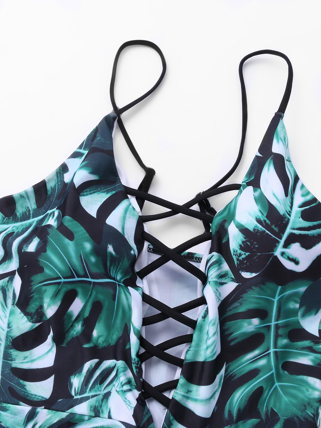 Deep V Neck Sleeveless Floral Print Lace-Up Criss-Cross Bikinis