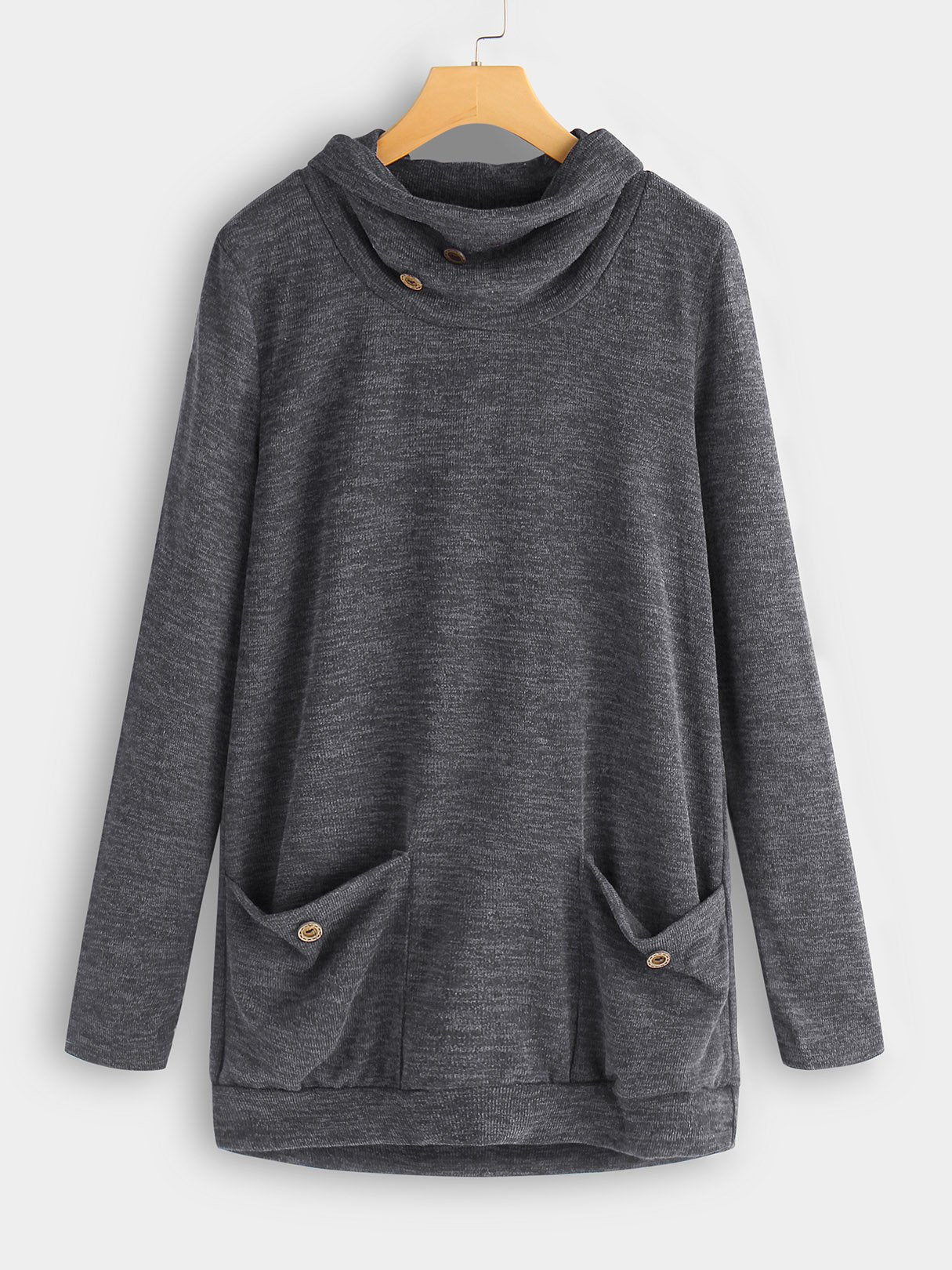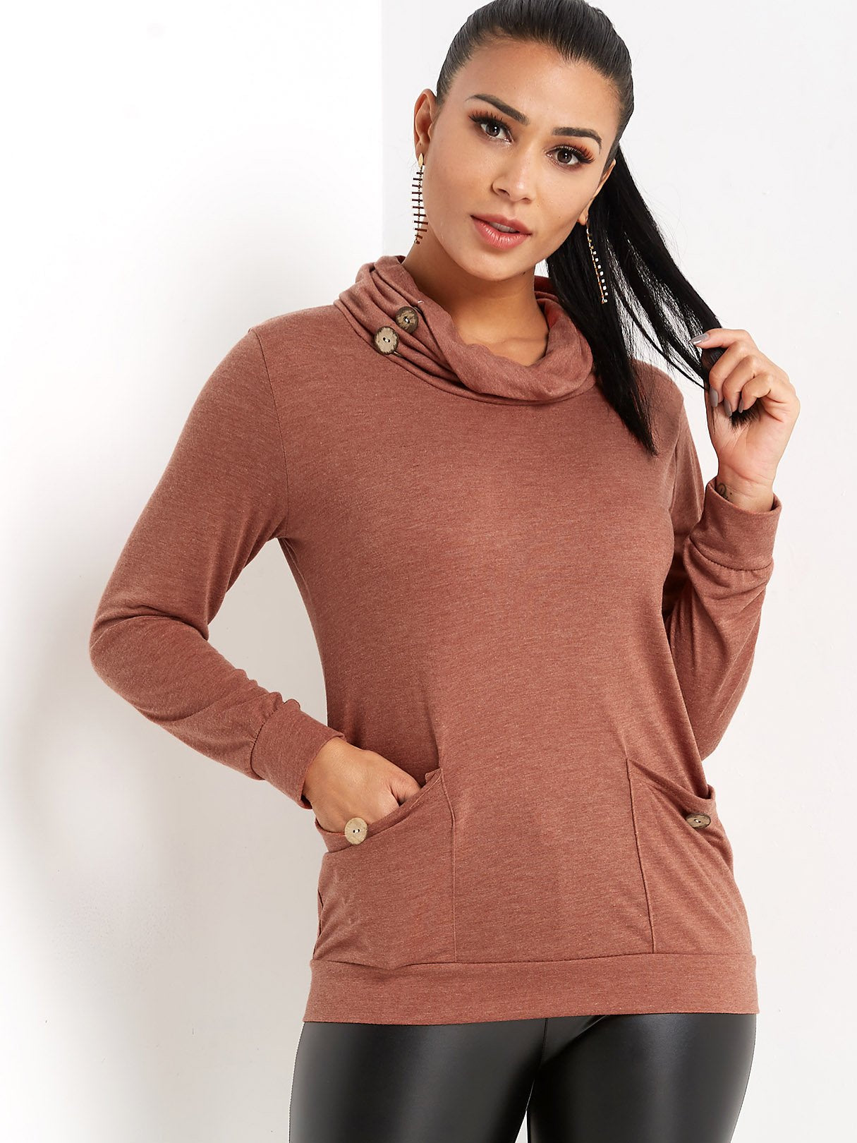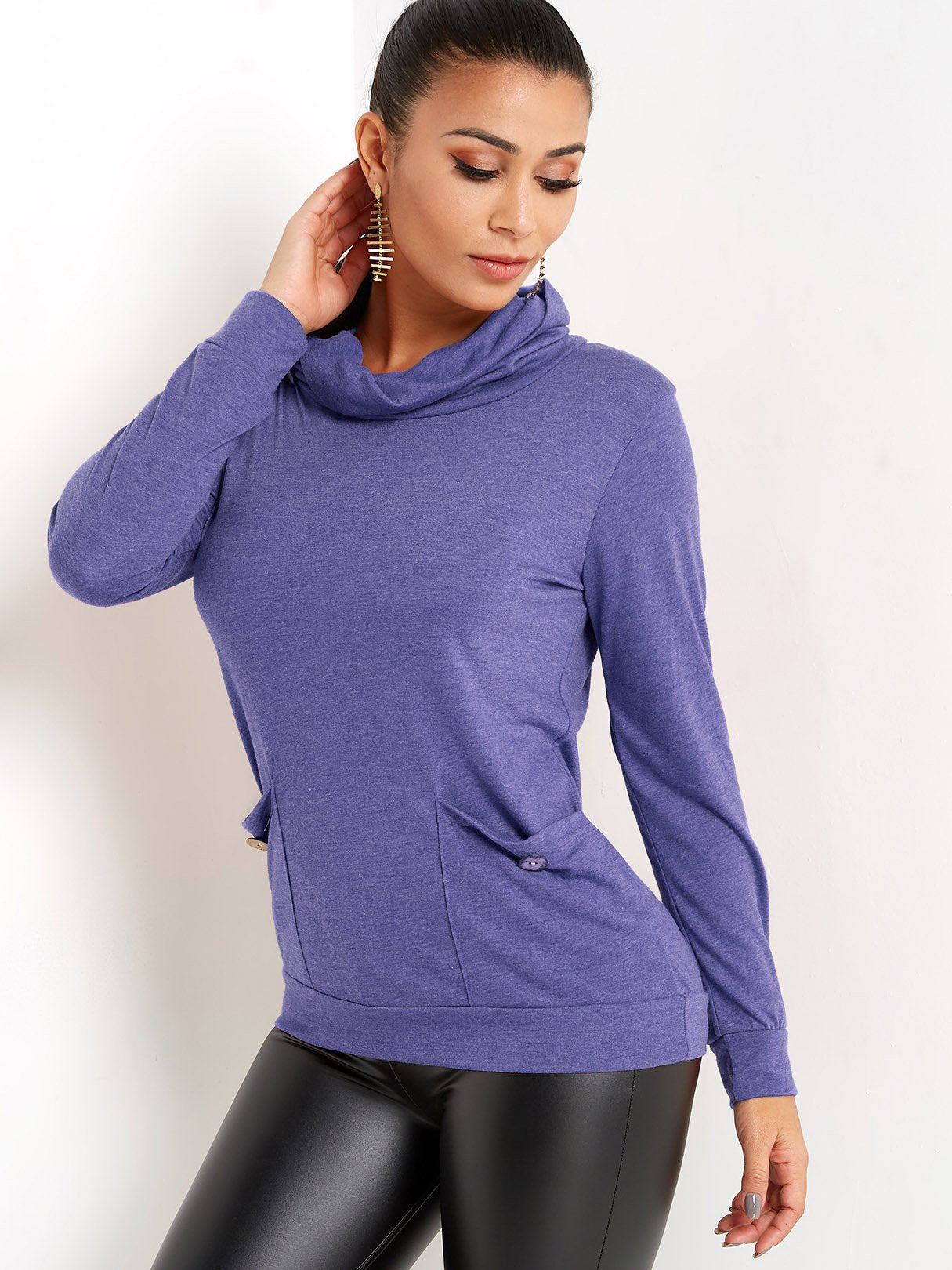 Drape Sagging Plain Side Pockets Long Sleeve Blouses