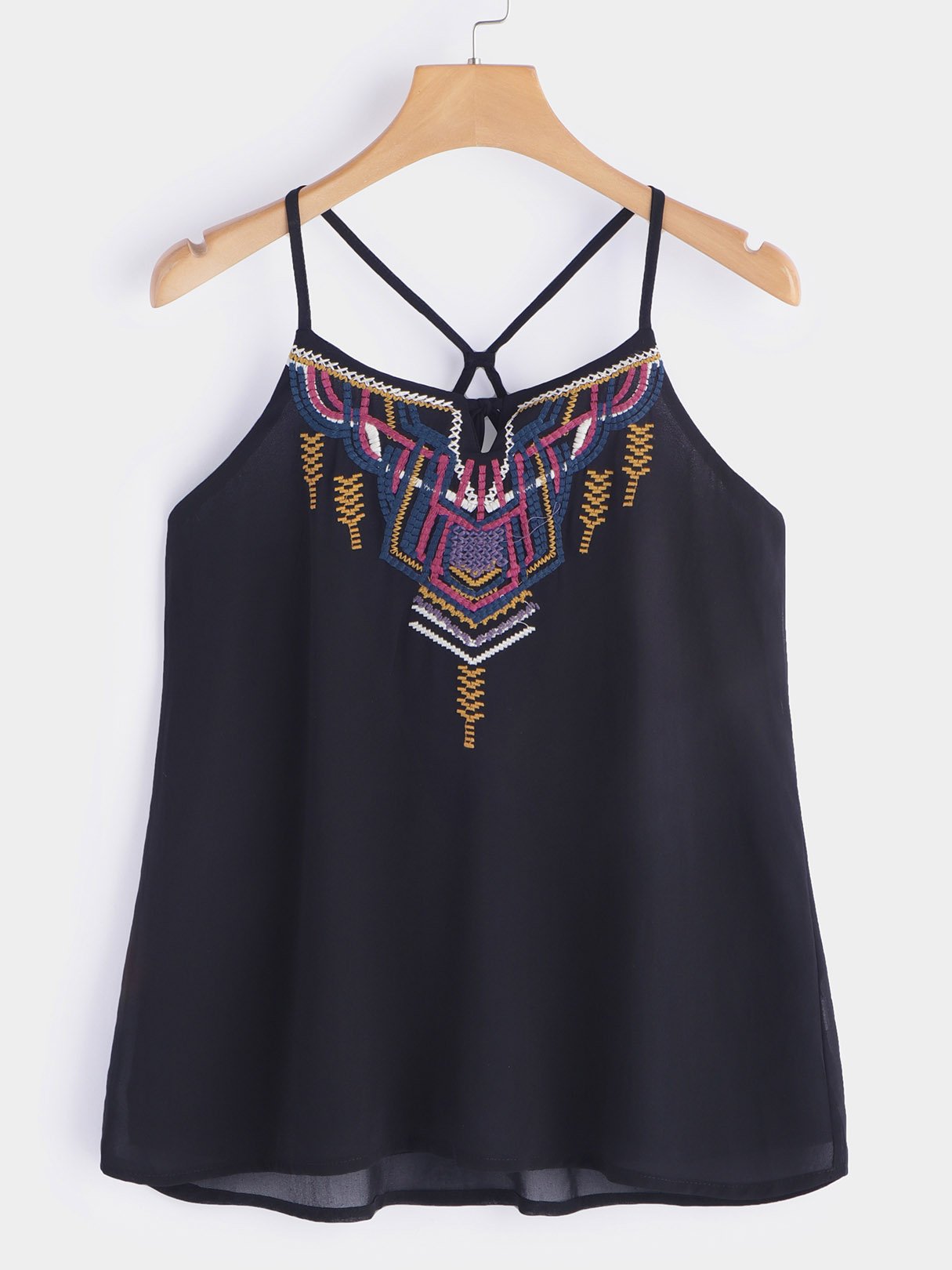 Material:PolyesterSeason:Spring,SummerSleeves:SleevelessPattern:EmbroideredStyle:Basic Style,Party Style,Vacation Style,Sexy StyleType:Camis &Amp; VestsFit:Regular Fit