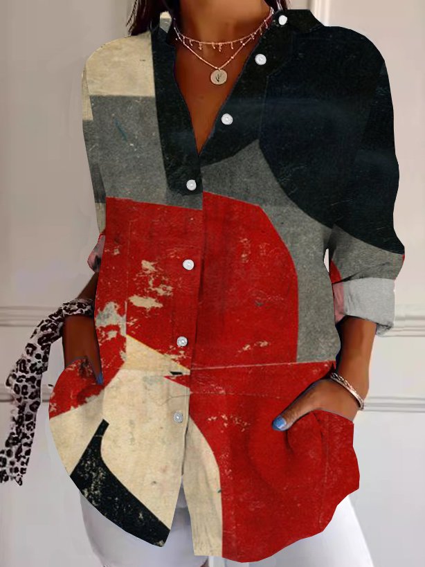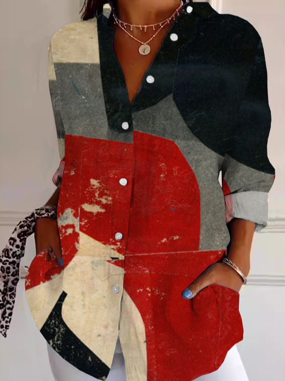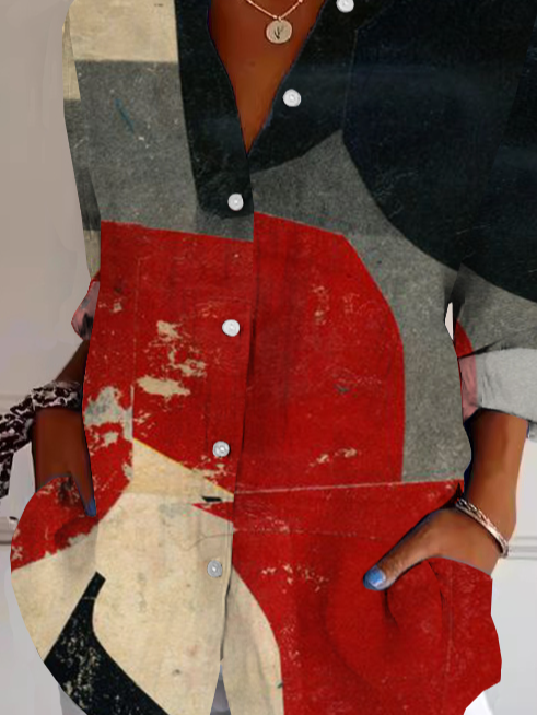 Fashion 3/4 Sleeve Shirt Collar Geometric Regular Shirt - Red / XS is backordered and will ship as soon as it is back in stock.