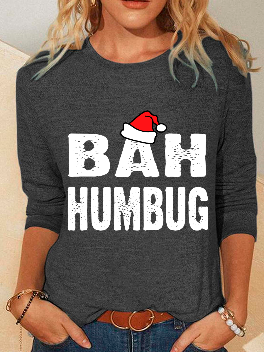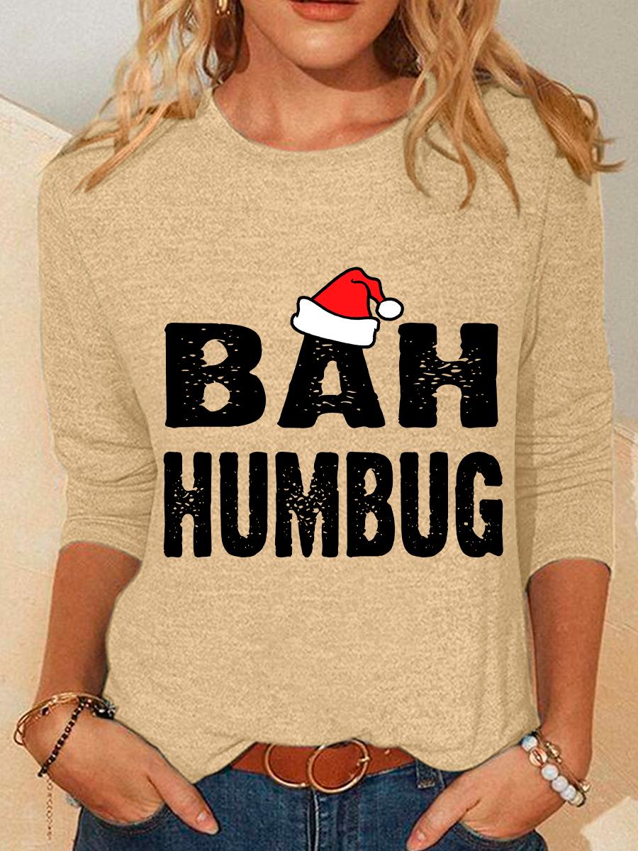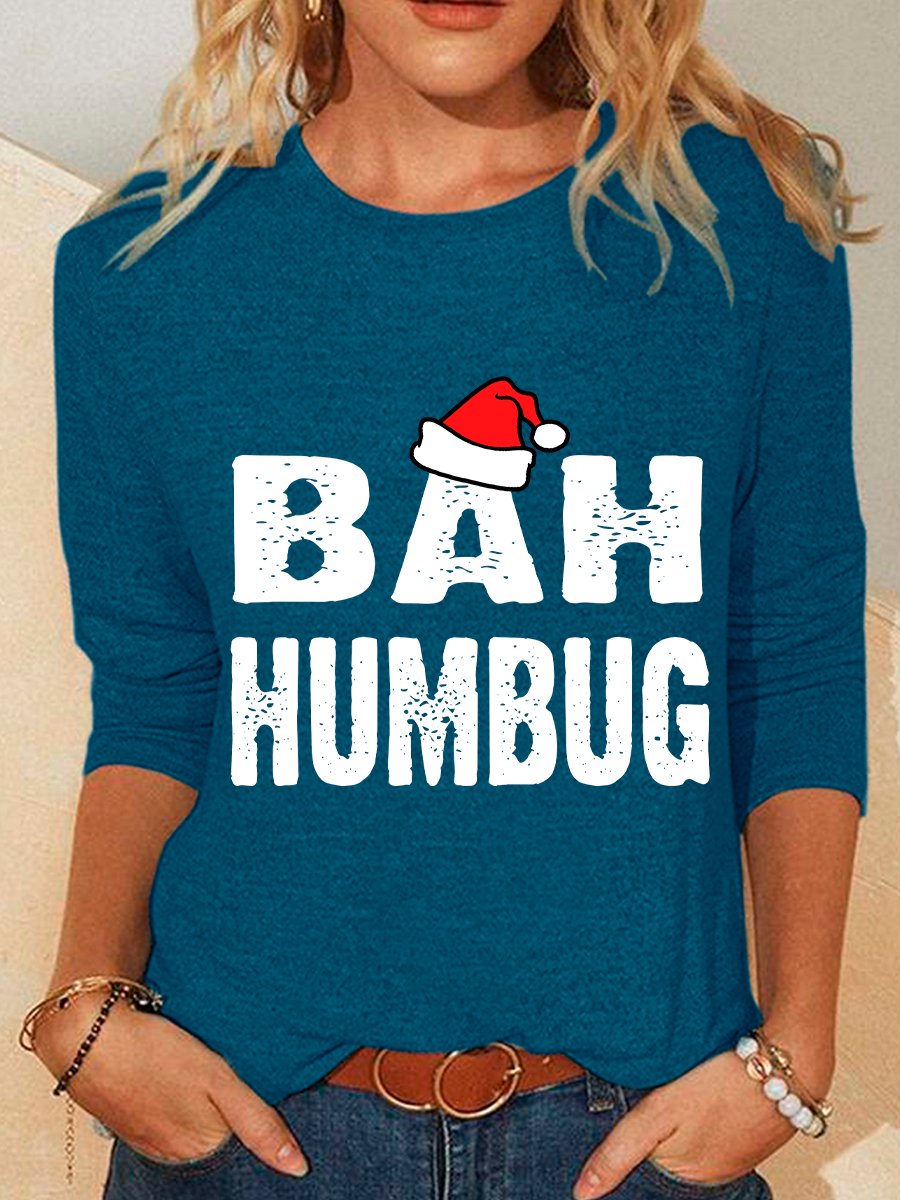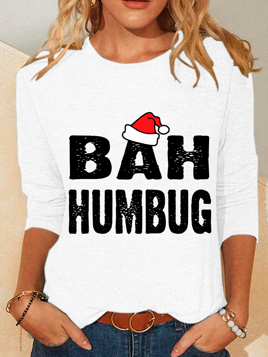 Fashion Crew Neck Long Sleeve Christmas Loose Regular Blouses