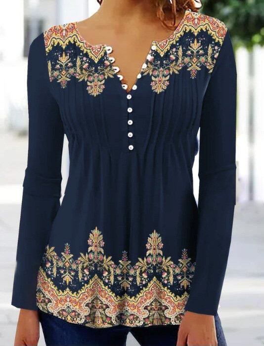 Fashion Crew Neck Long Sleeve Ethnic Loose Regular Blouses - Black / S is backordered and will ship as soon as it is back in stock.
