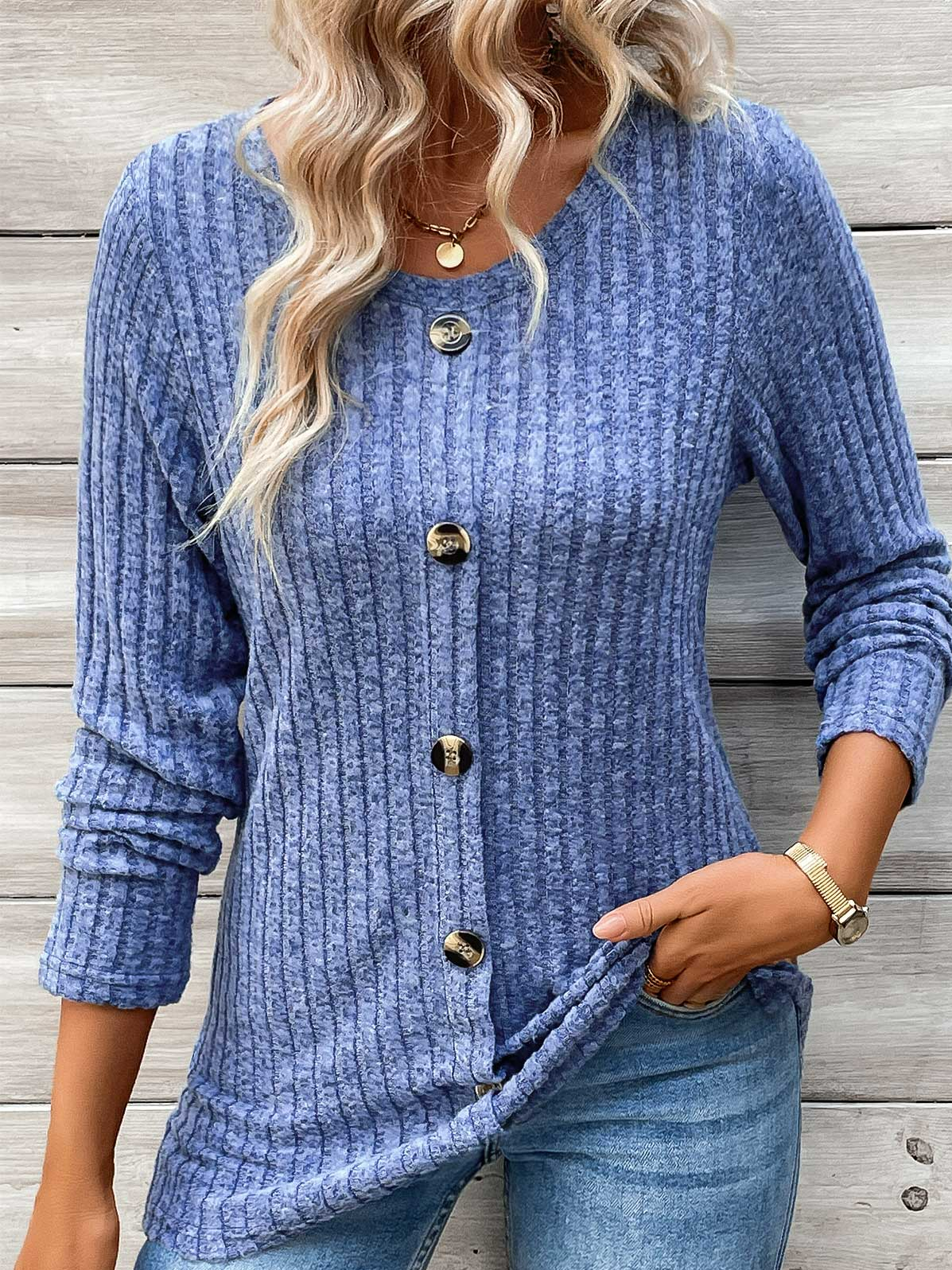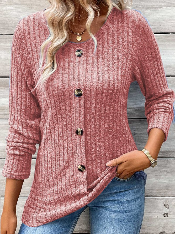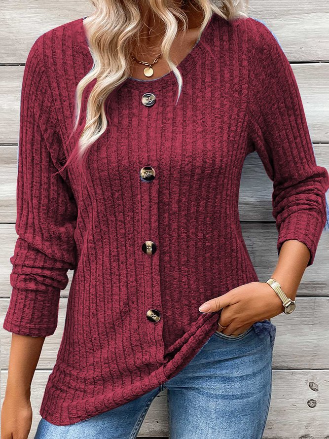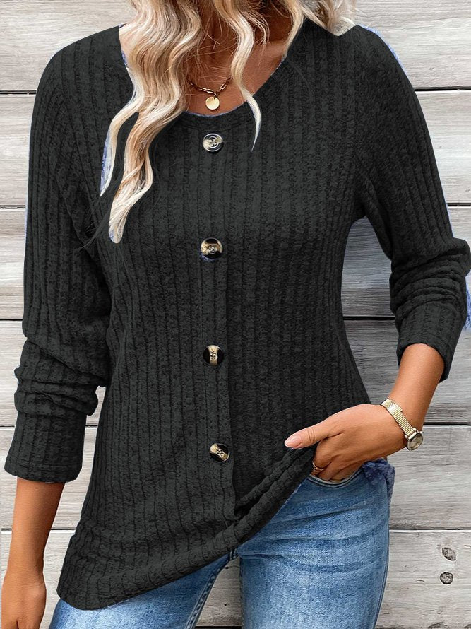 Fashion Crew Neck Long Sleeve Plain Regular Blouses