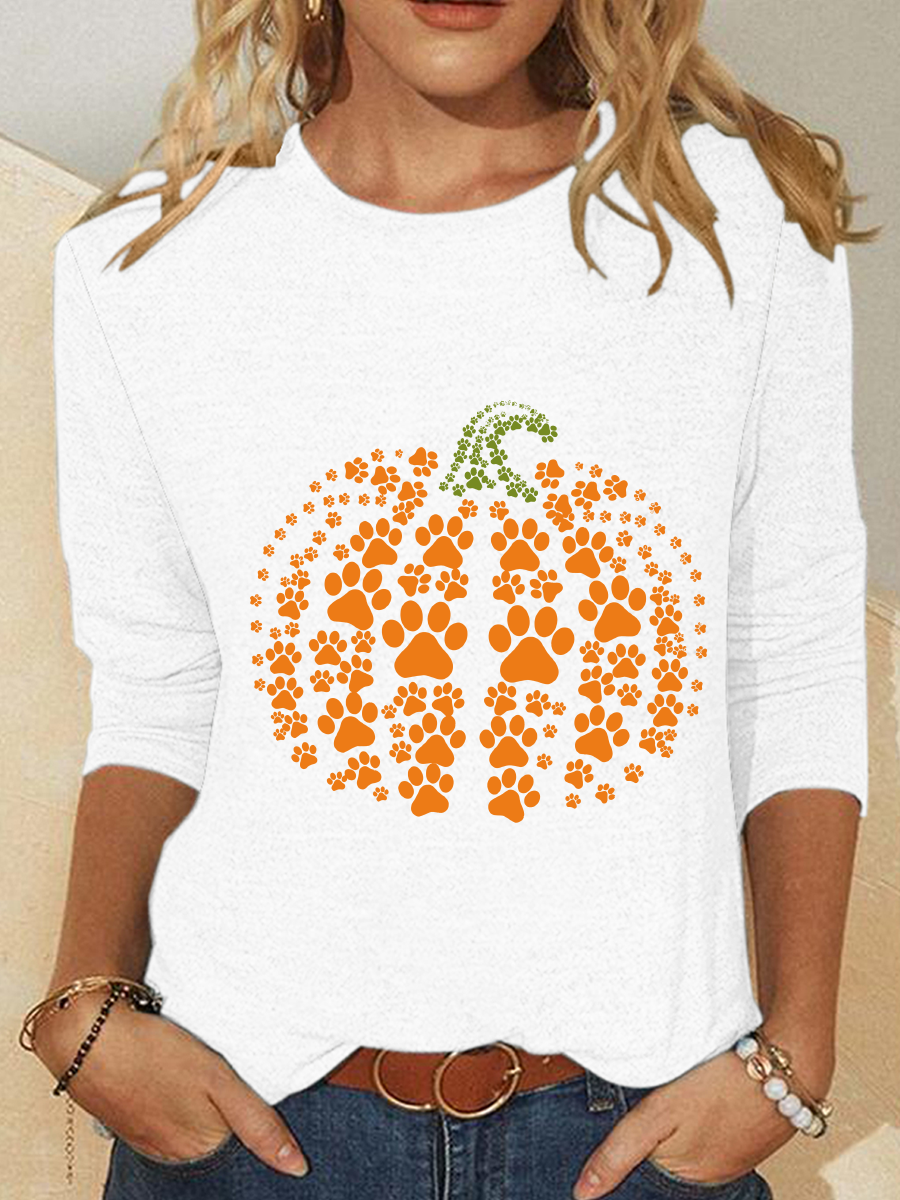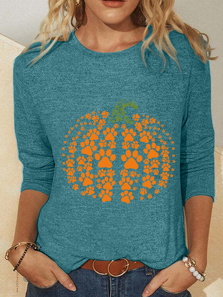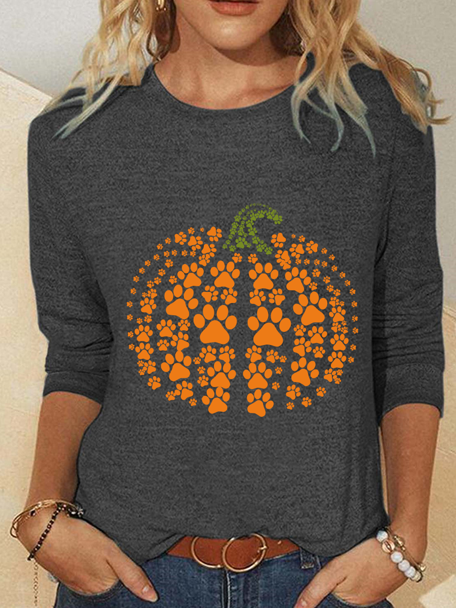 Fashion Crew Neck Long Sleeve Text Letters Loose Regular Blouse