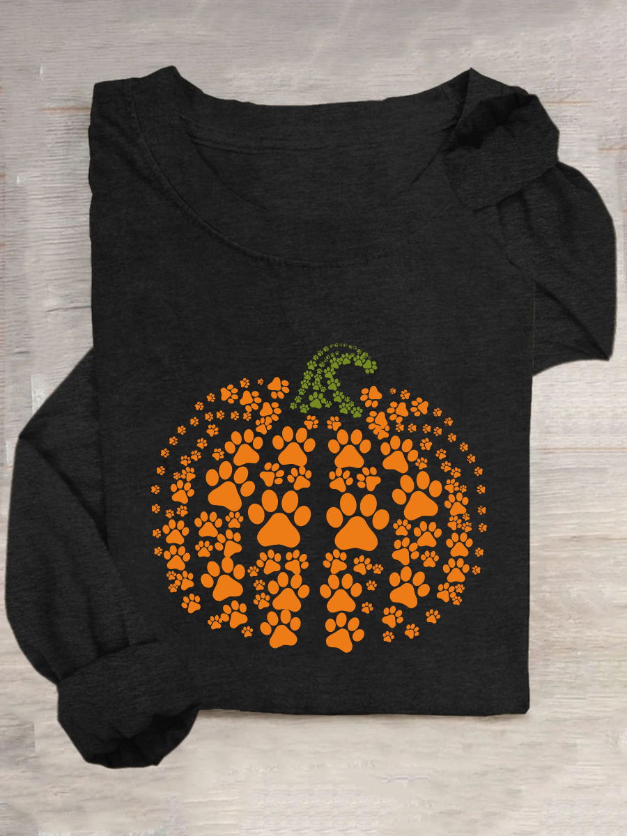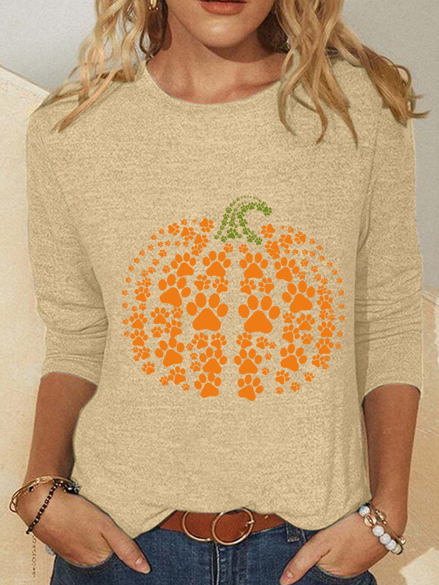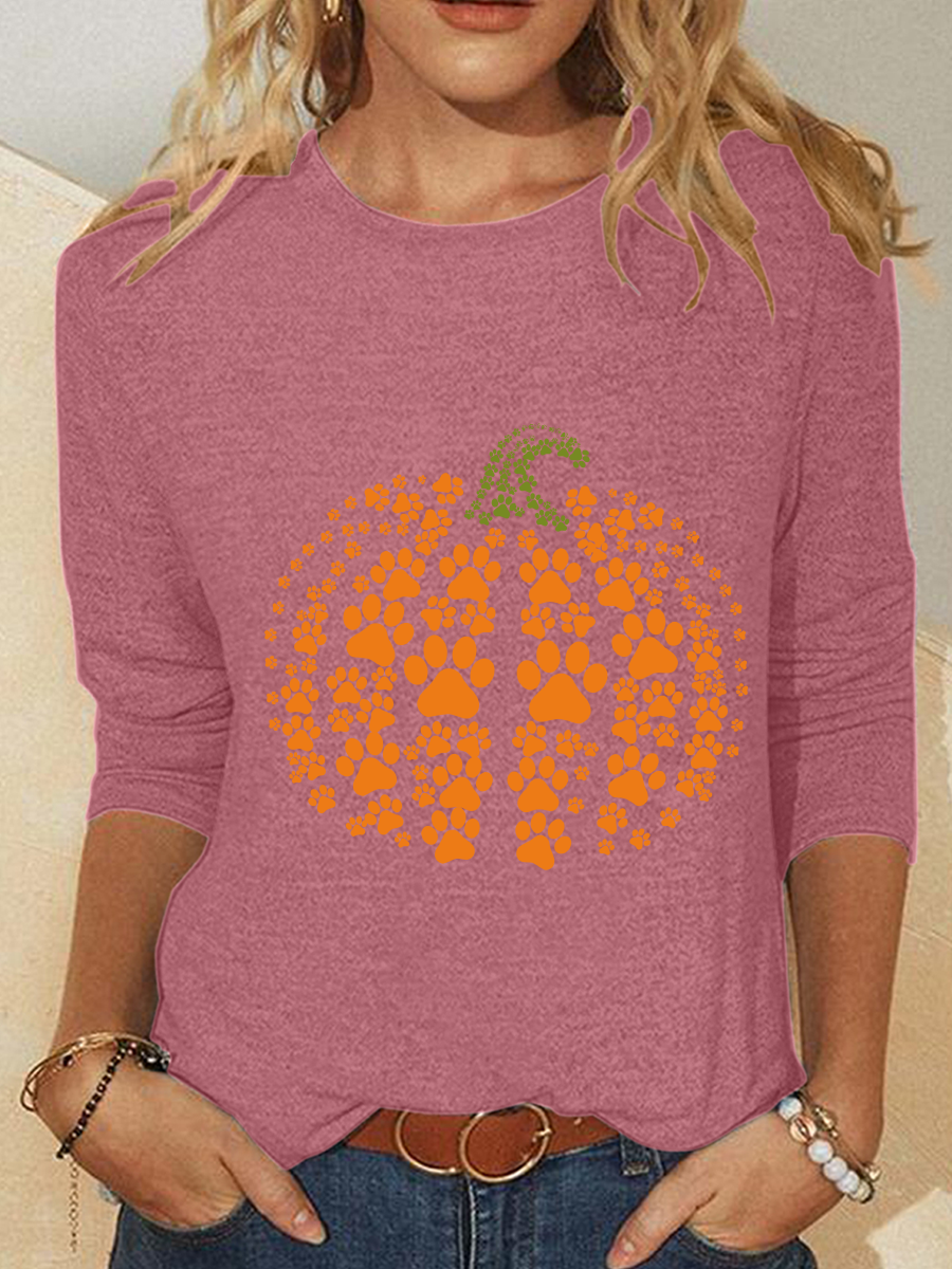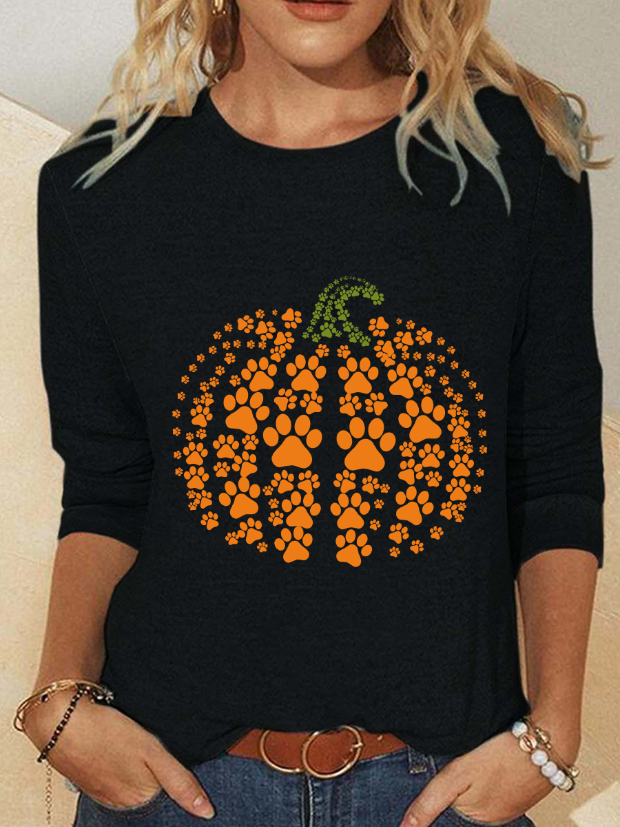 Fashion Crew Neck Long Sleeve Text Letters Loose Regular Blouse