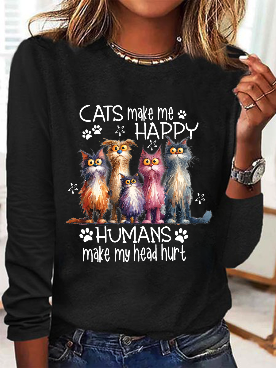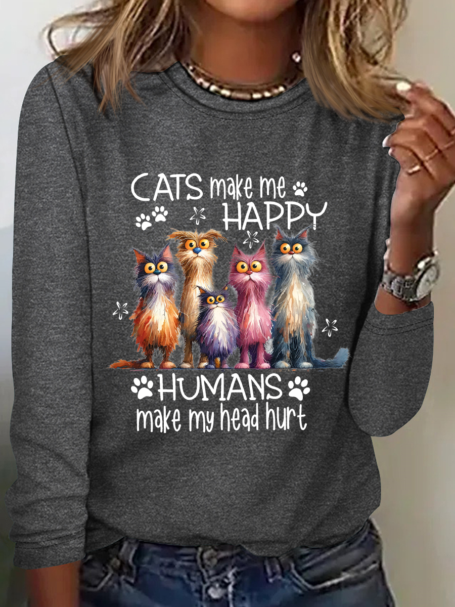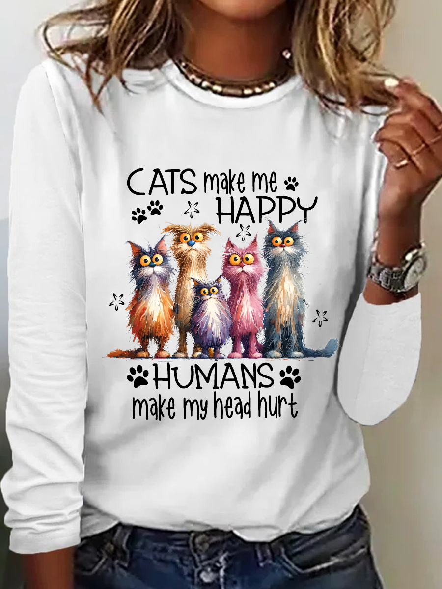 Fashion Crew Neck Long Sleeve Text Letters Loose Regular Blouse