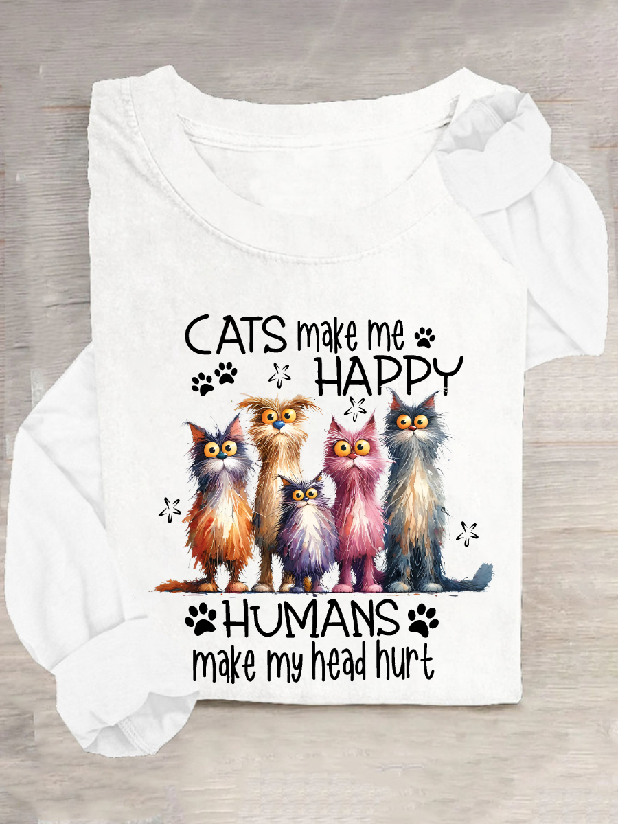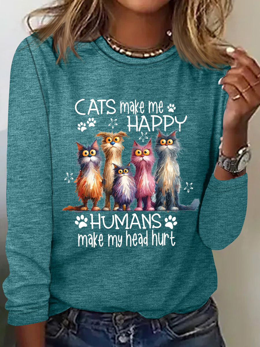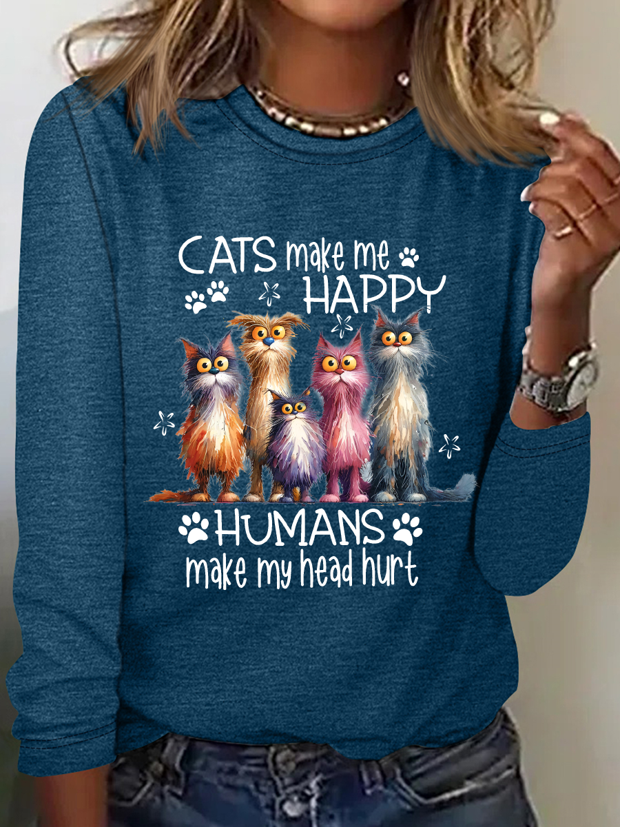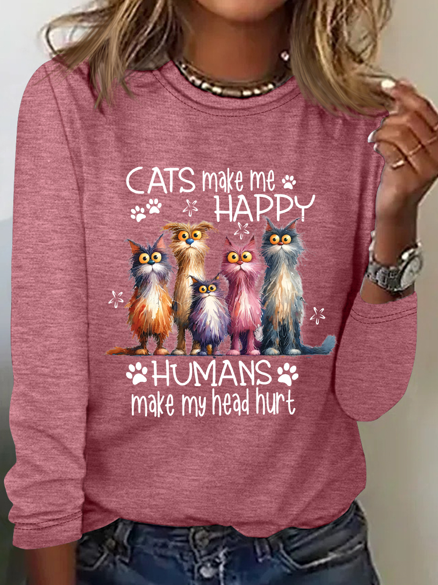 Fashion Crew Neck Long Sleeve Text Letters Loose Regular Blouse