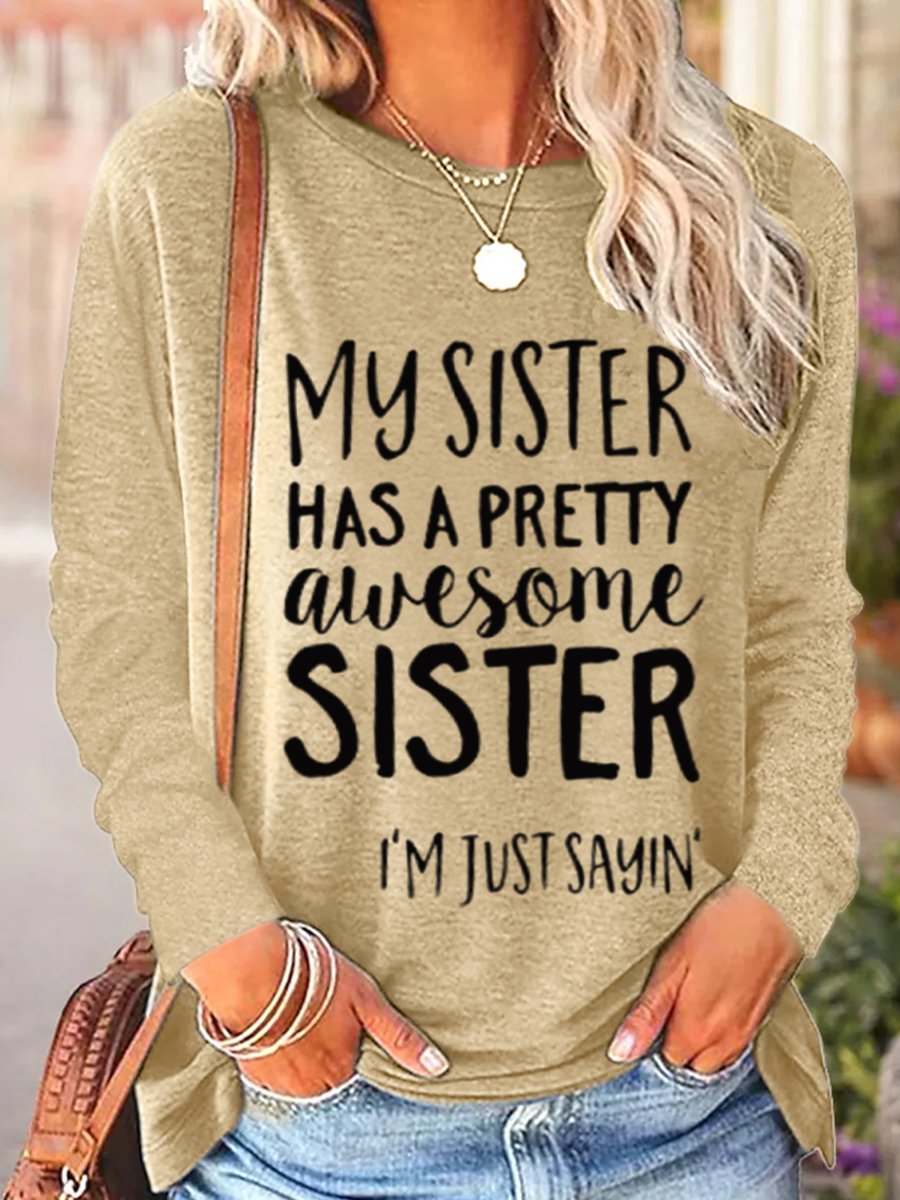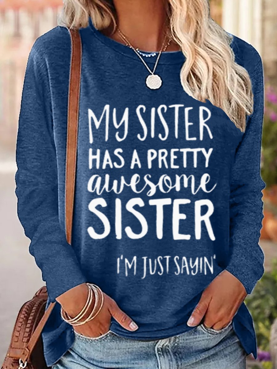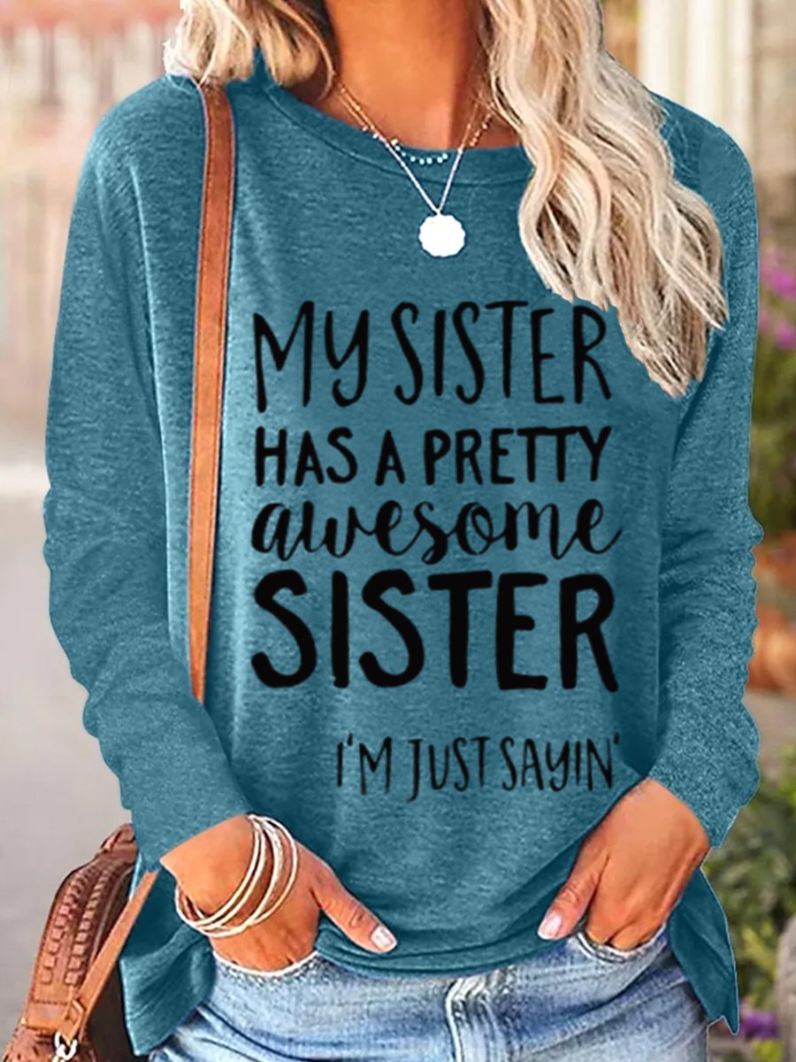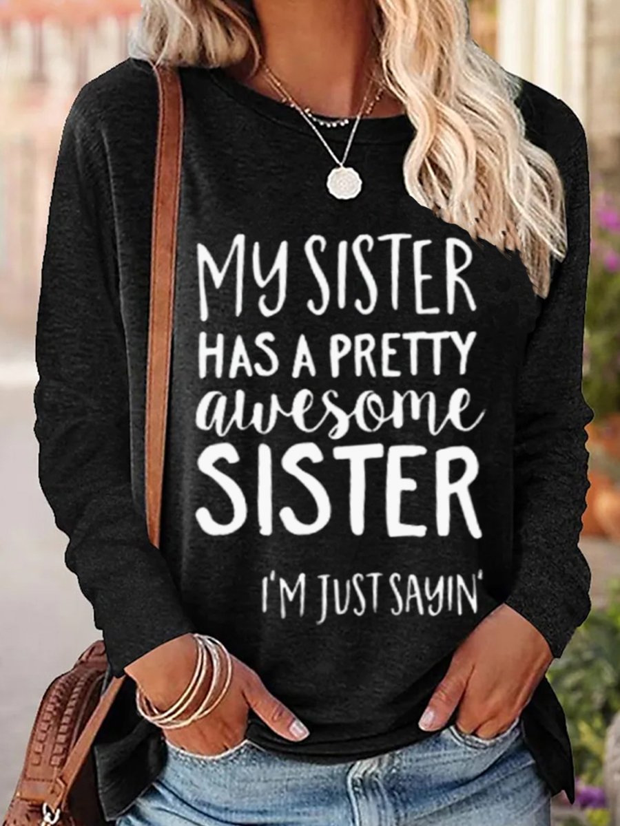 Fashion Crew Neck Long Sleeve Text Letters Loose Regular Blouse - Black / S is backordered and will ship as soon as it is back in stock.