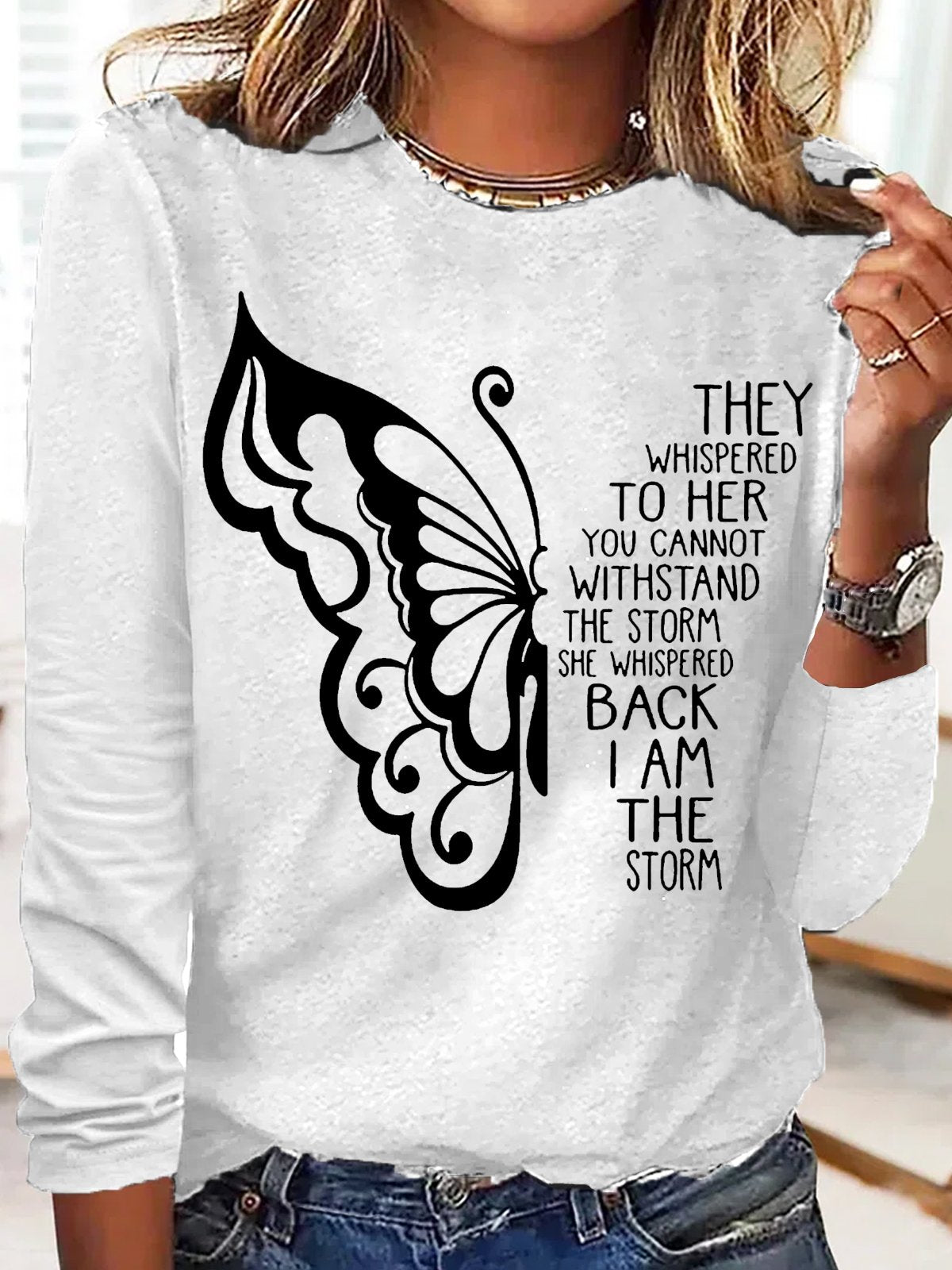 Fashion Crew Neck Long Sleeve Text Letters Regular Blouse - Black / S is backordered and will ship as soon as it is back in stock.