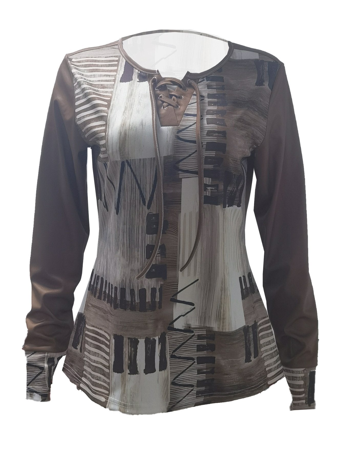 Fashion Long Sleeve Geometric Loose Regular Blouse - Brown / S is backordered and will ship as soon as it is back in stock.