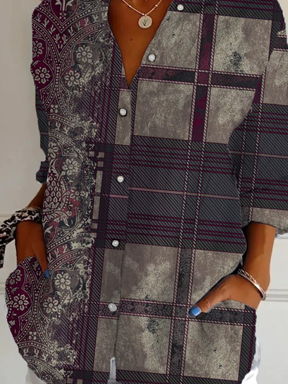 Fashion Long Sleeve Shirt Collar Plaid Loose Regular Shirt