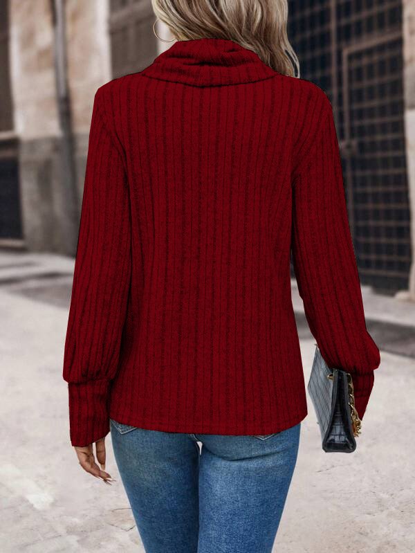Fashion Long Sleeve Turtleneck Plain Loose Regular Blouse - Gray / S is backordered and will ship as soon as it is back in stock.