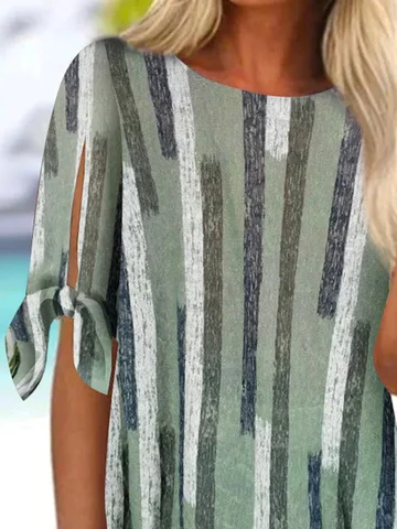 Fashion Short Sleeve Crew Neck Abstract Graphic Loose Mid-Long Blouses - Green / S is backordered and will ship as soon as it is back in stock.