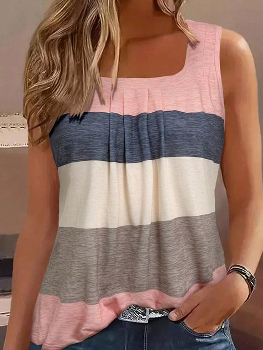Fashion Sleeveless Square Neck Multicolor Block Loose Regular Tank Top - Multicolor / S is backordered and will ship as soon as it is back in stock.