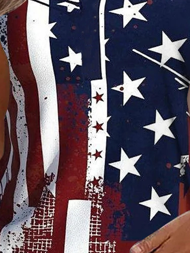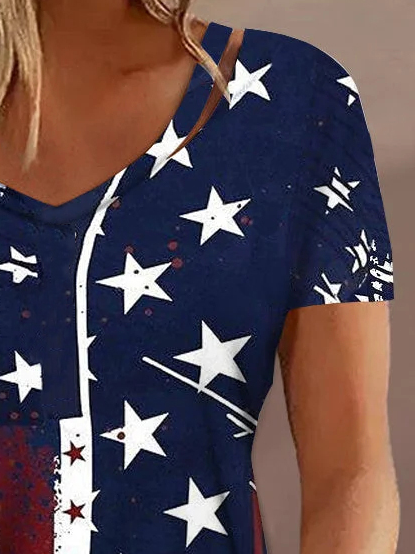 Fashion V Neck Short Sleeve Independence Day Loose Regular Blouses - Red / S is backordered and will ship as soon as it is back in stock.
