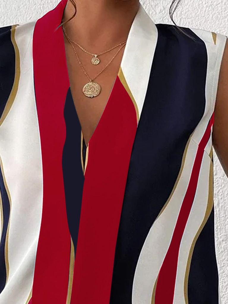 Fashion V Neck Sleeveless Abstract Stripes Loose Regular Tank Top - White-Blue / S is backordered and will ship as soon as it is back in stock.