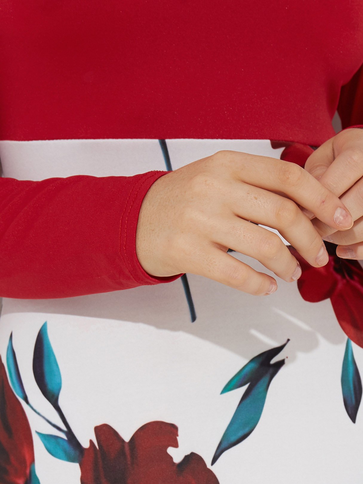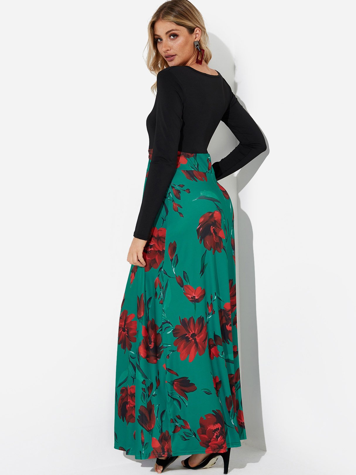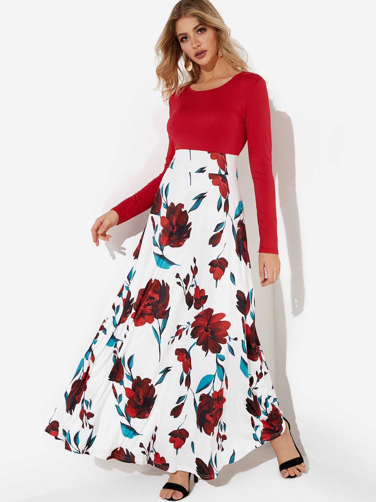 Floral Print Round Neck Long Sleeve Dresses