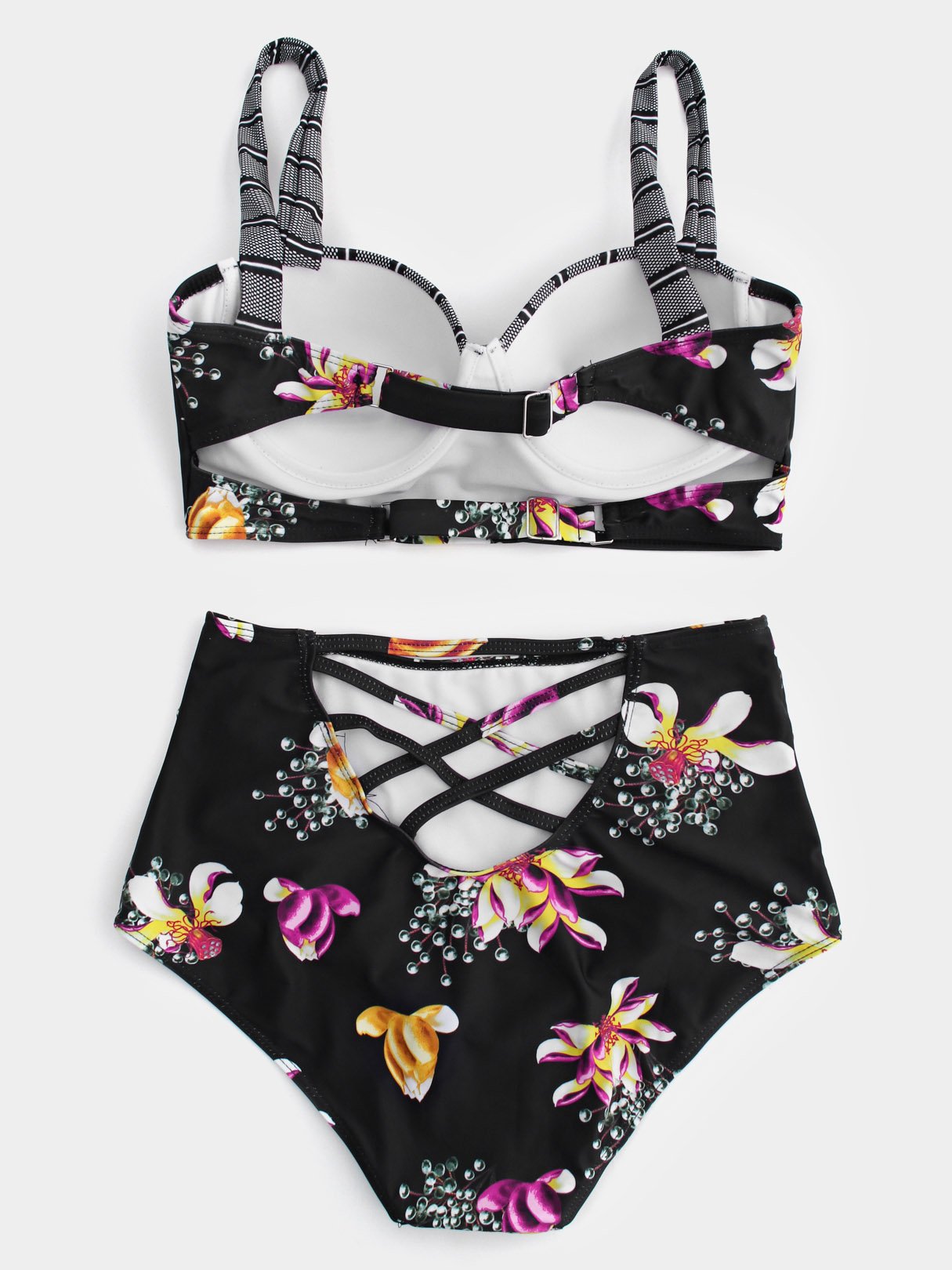 Floral Print Spaghetti Strap Bikini Set Swimwear