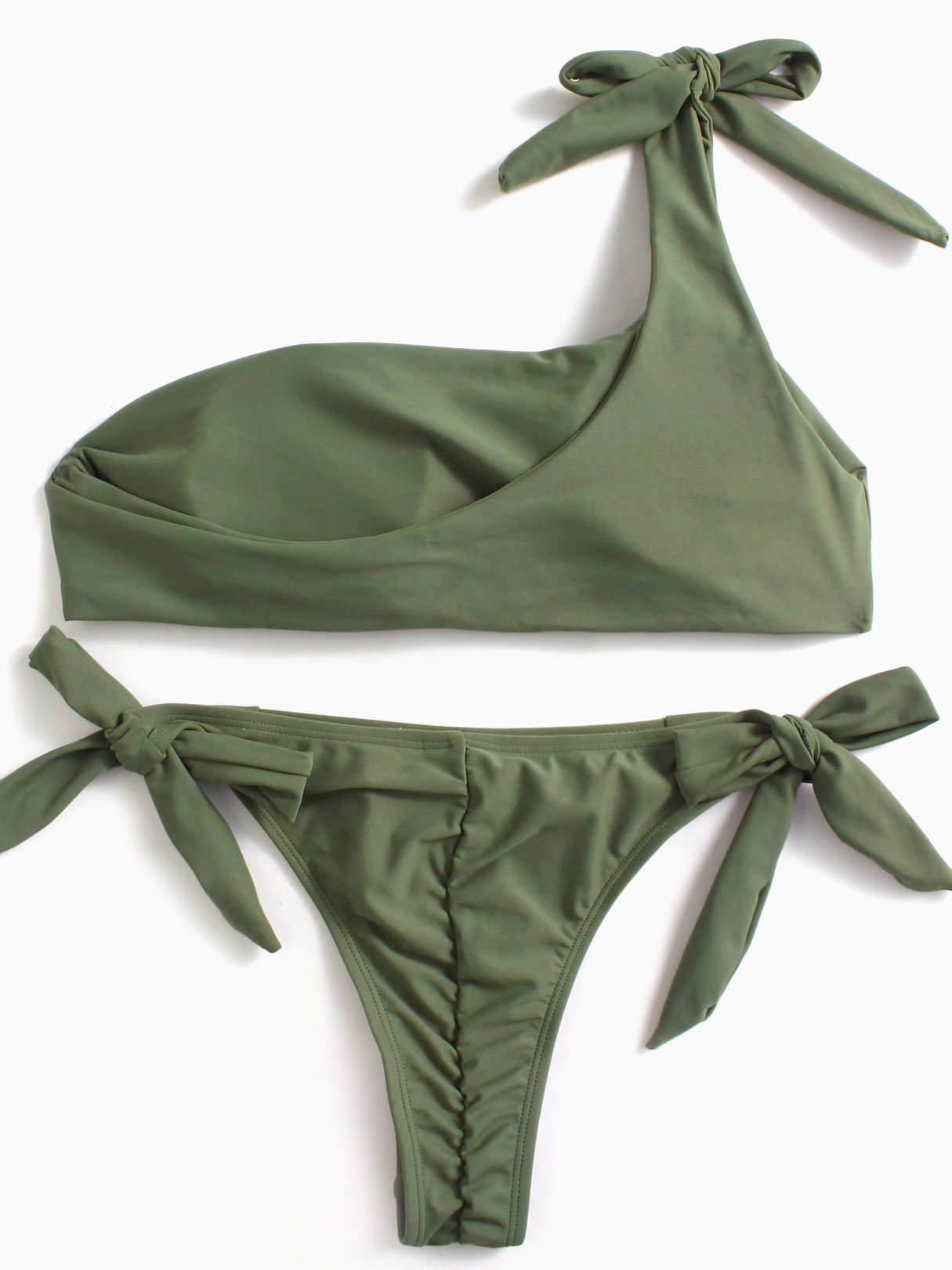 Green Asymmetrical Sleeveless Tie-Up Bodycon High-Waisted Bikini Swimsuit