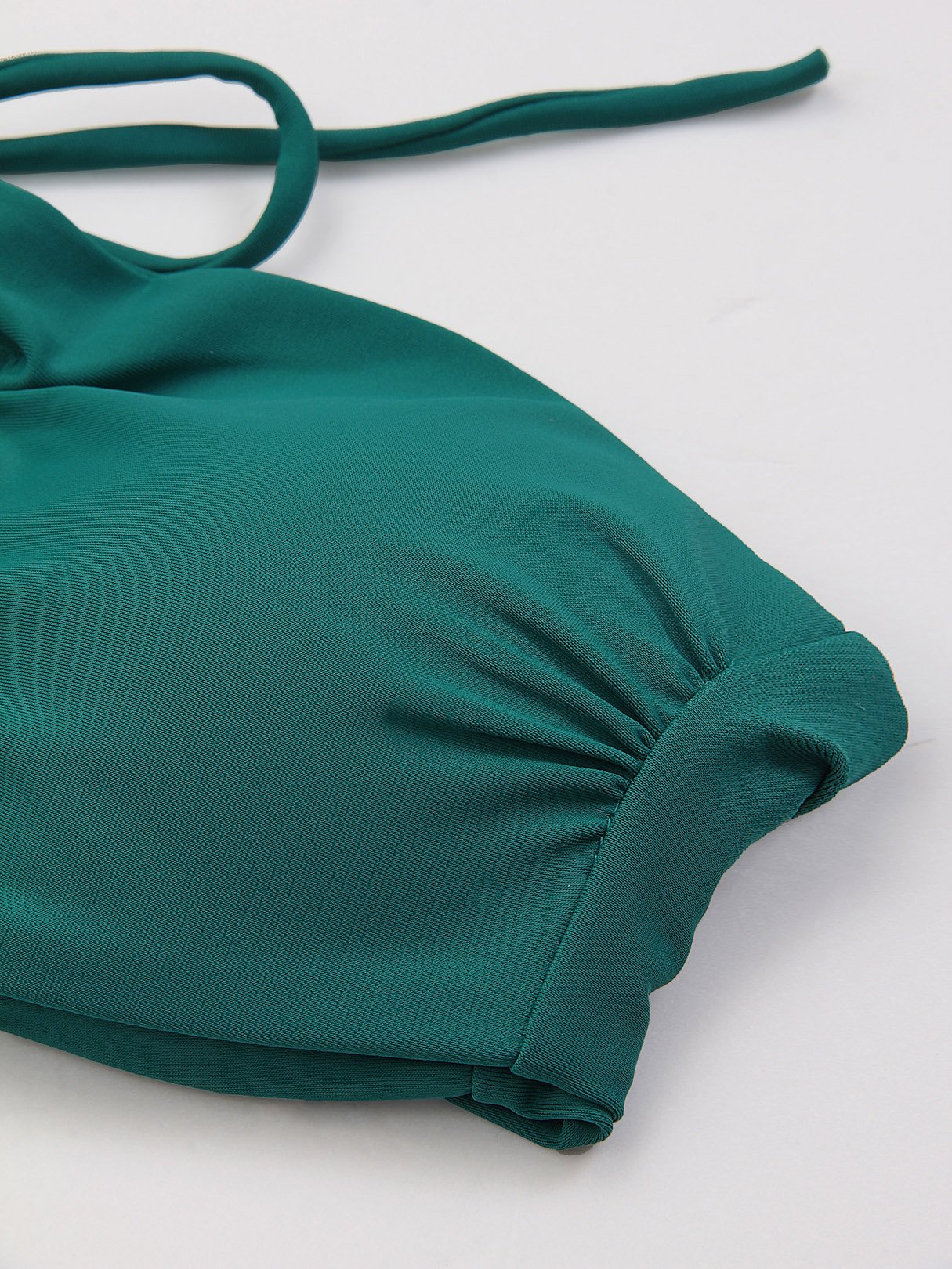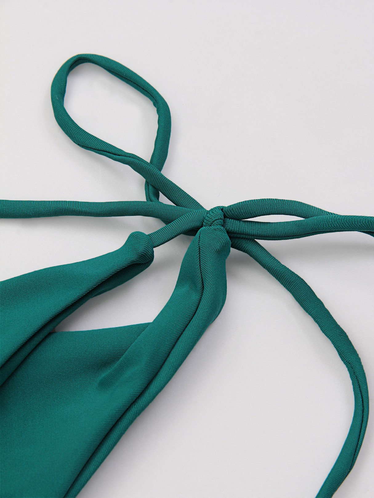 Green Halter Sleeveless Hollow Lace-Up Bodycon Two Piece Bikinis