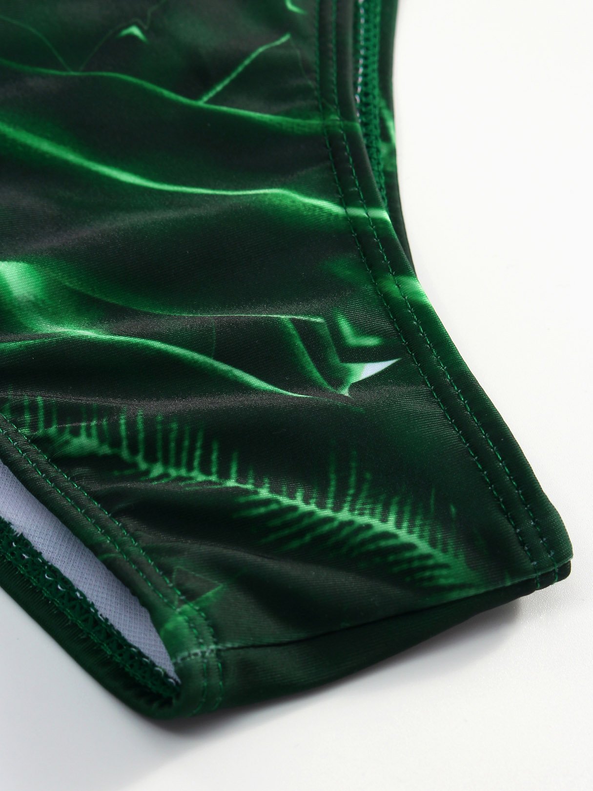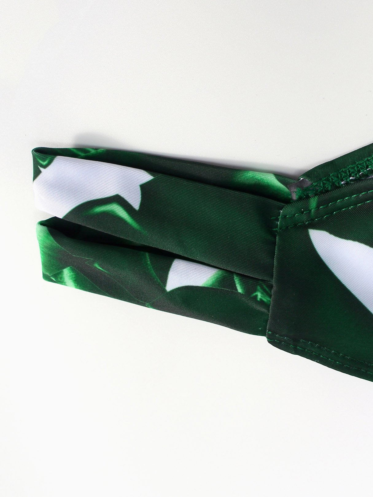 Green Halter Sleeveless Printed Cut Out Tie-Up Bikinis