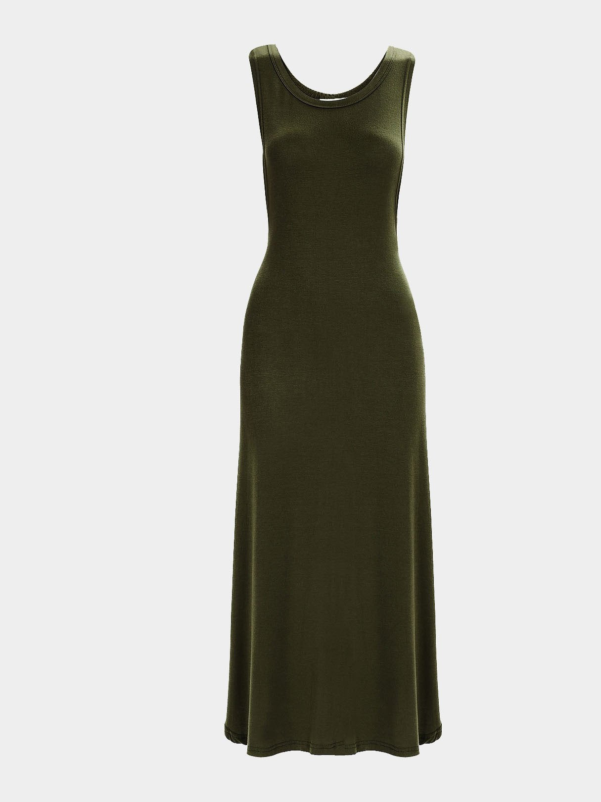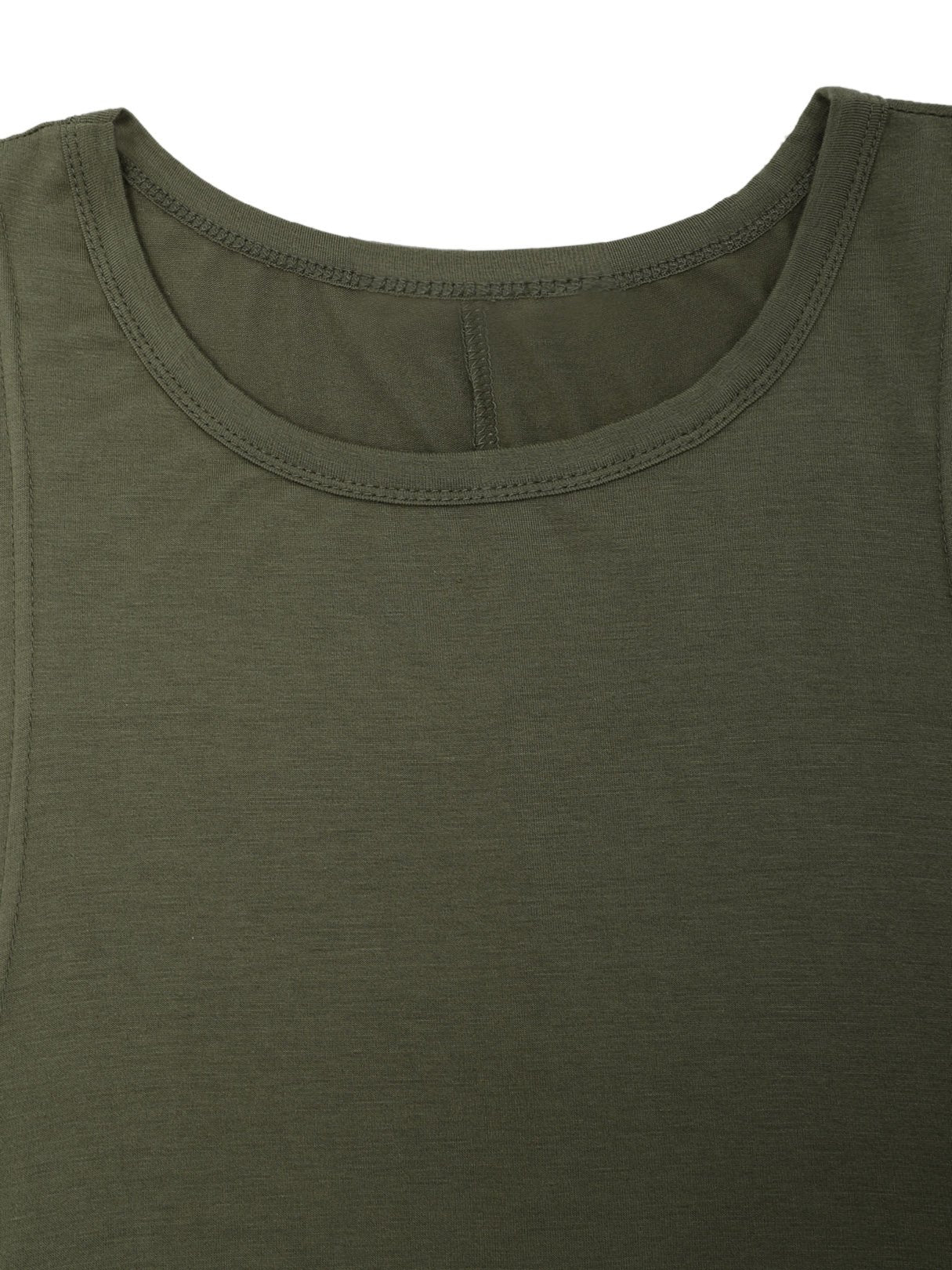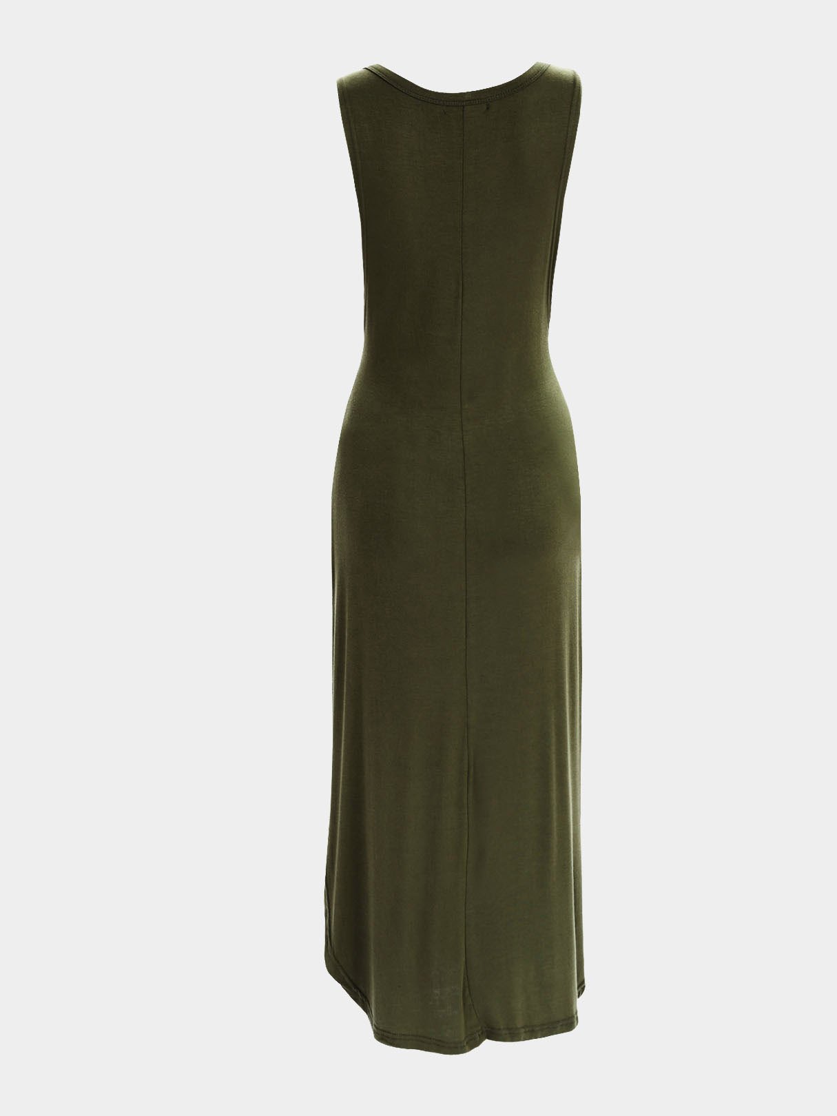 Green Round Neck Sleeveless Slit Hem Sexy Dress