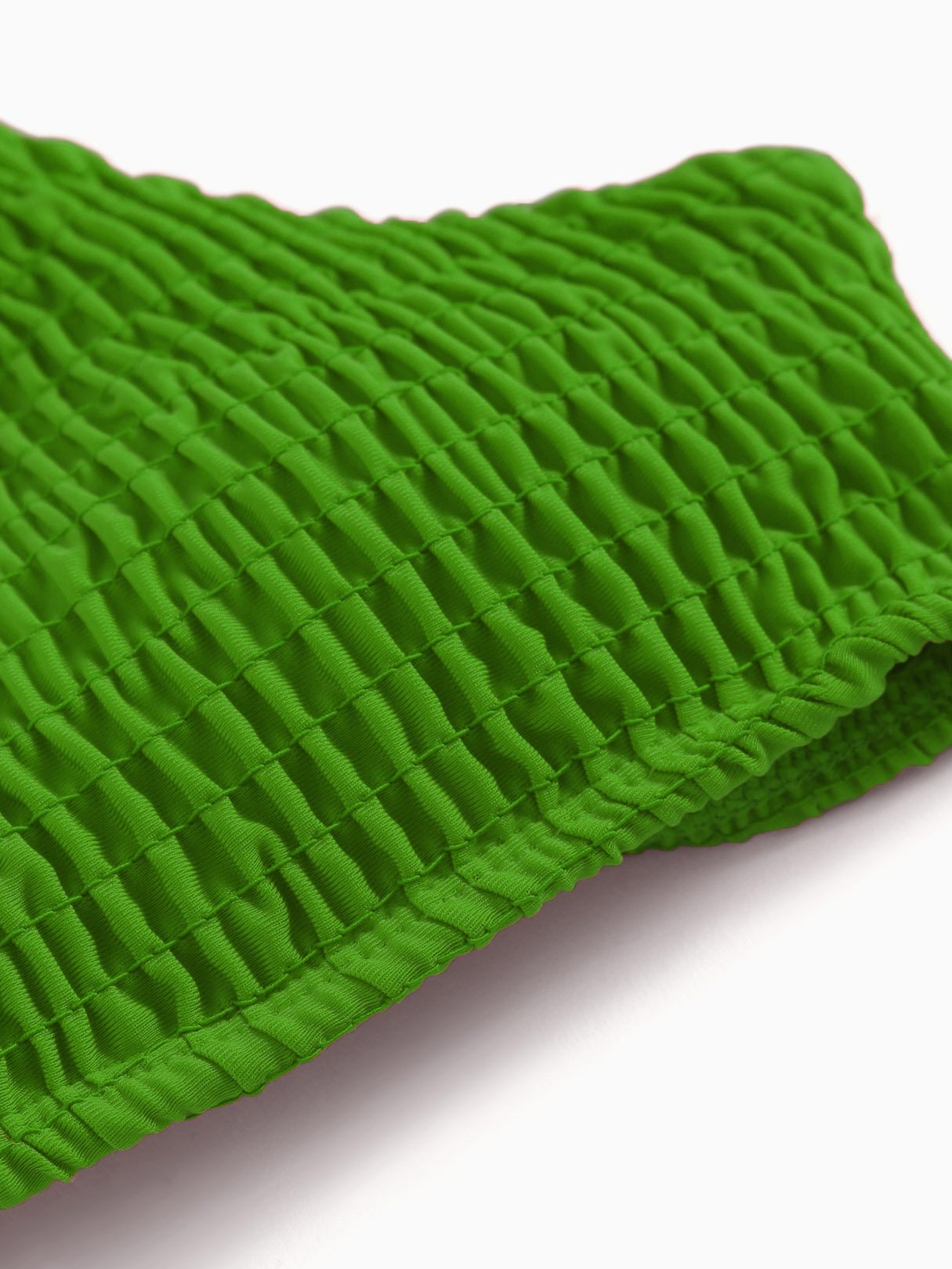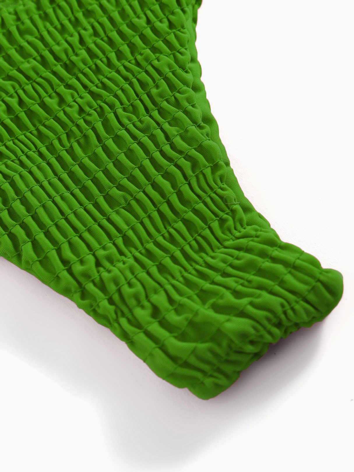 Green Scoop Neck Sleeveless Plain Backless Stitching Hem Two Piece Bikinis