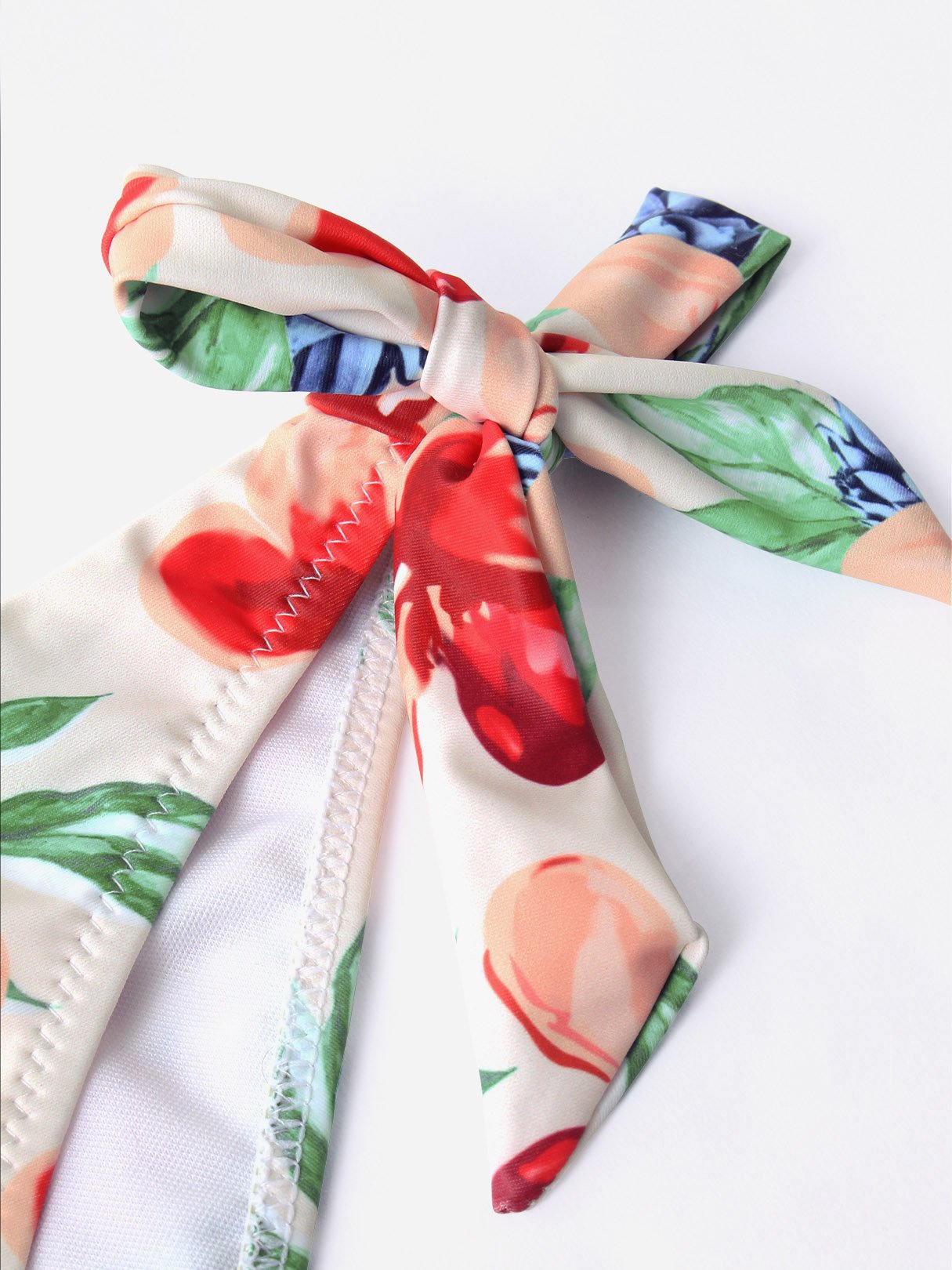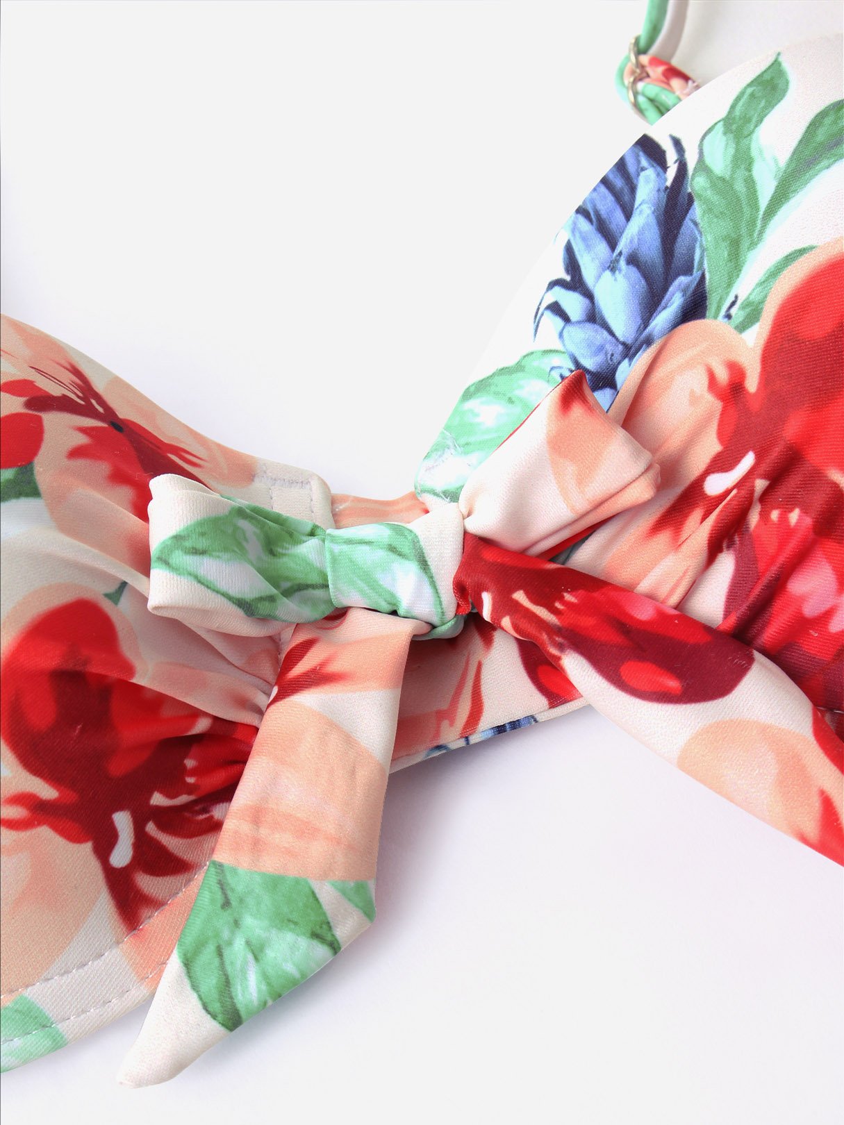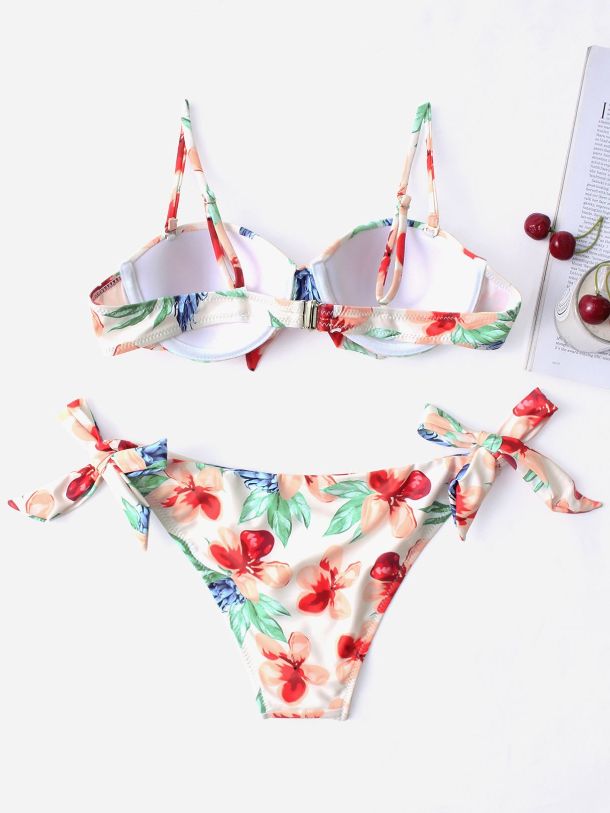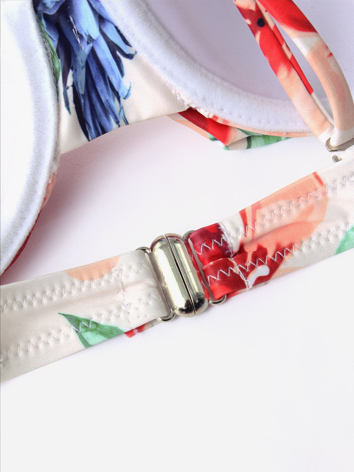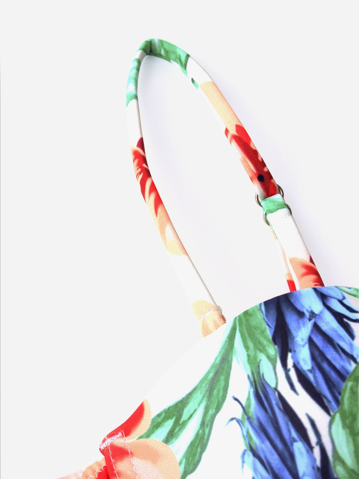 Green Sleeveless Floral Print Spaghetti Strap Two Piece Bikinis