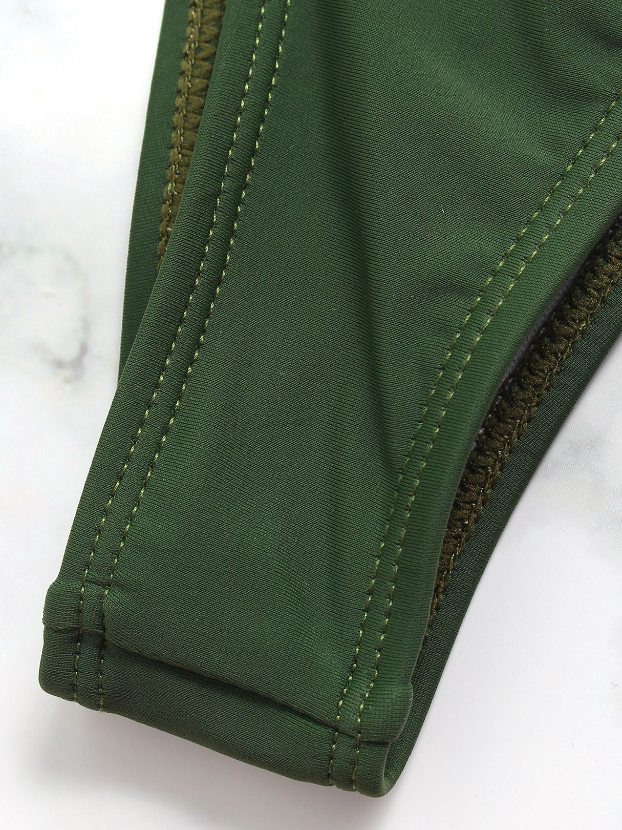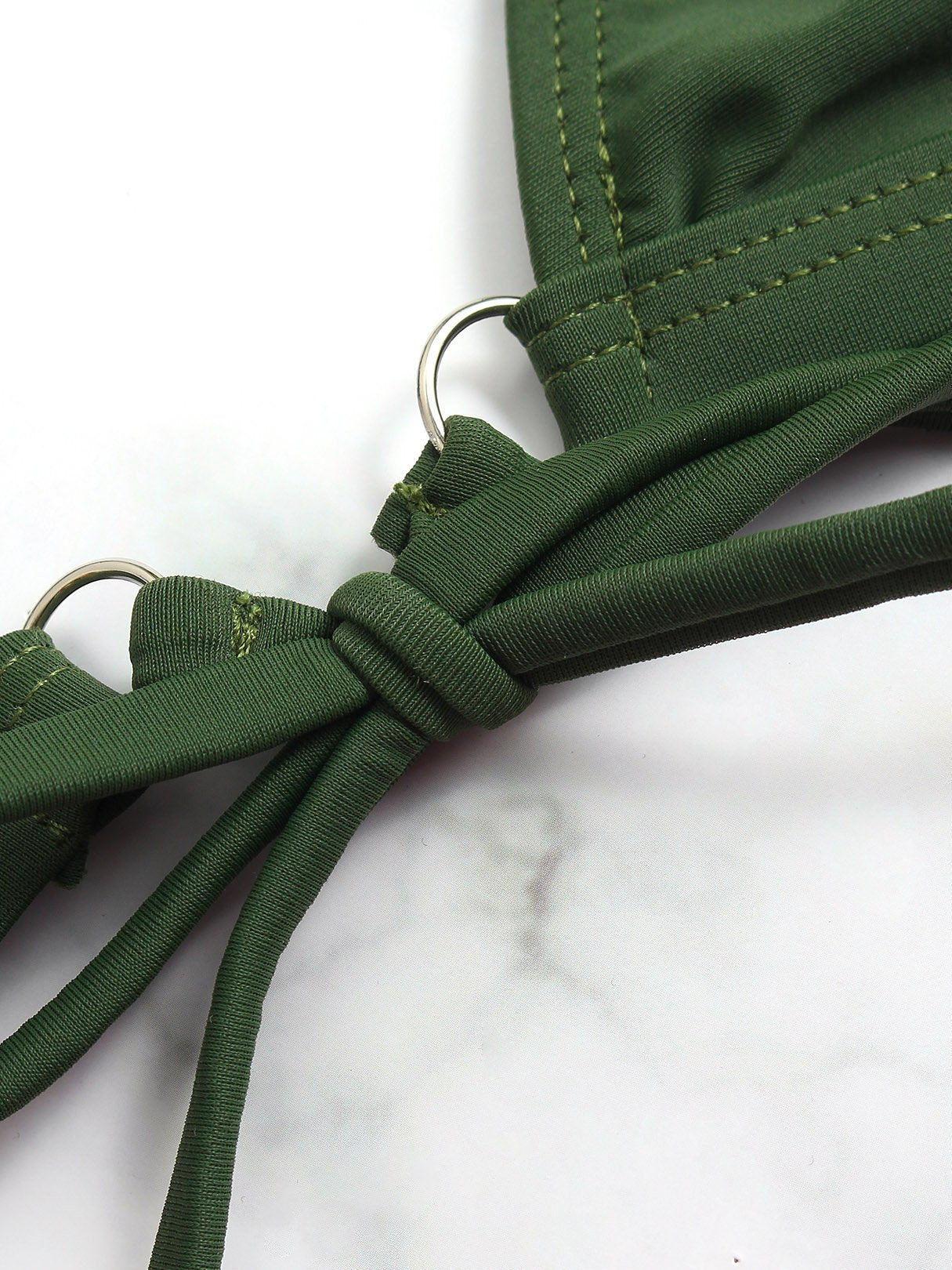 Green V-Neck Plain Tie-Up High-Waisted Two Piece Bikinis
