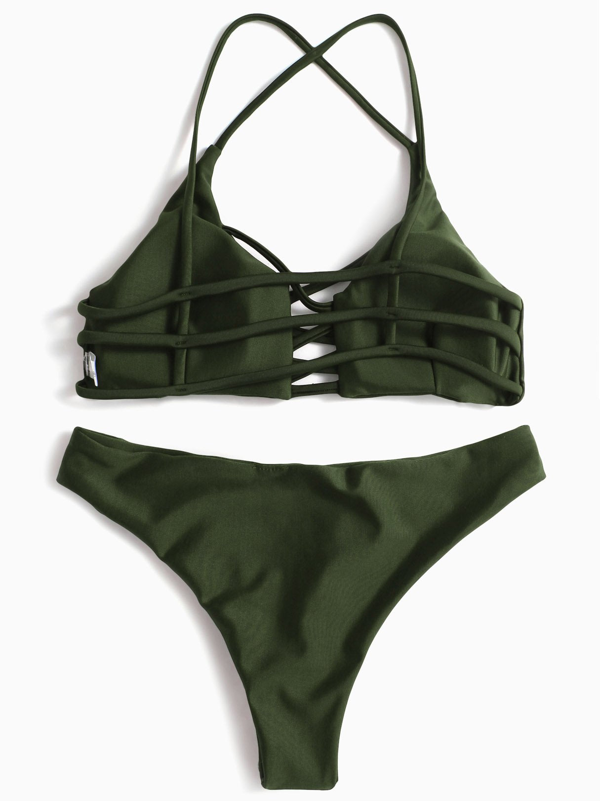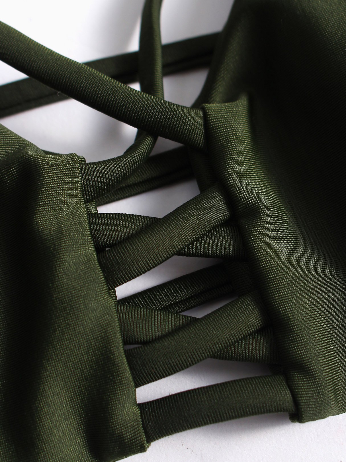 Green V-Neck Sleeveless Criss-Cross Two Piece Bikinis